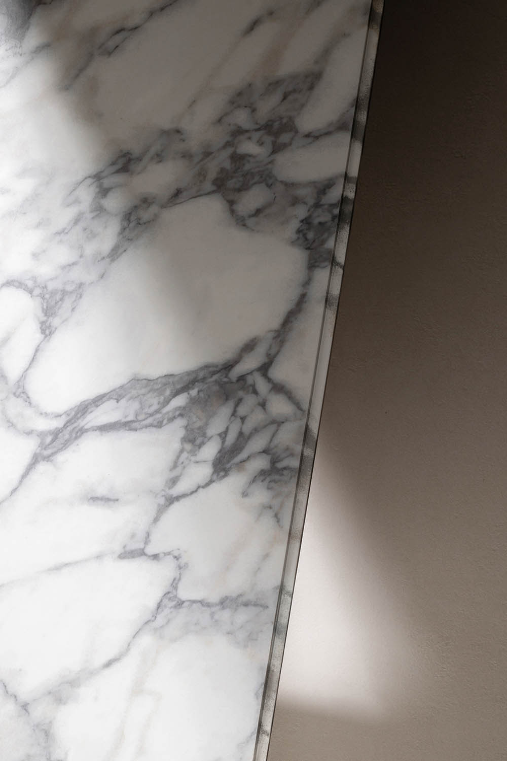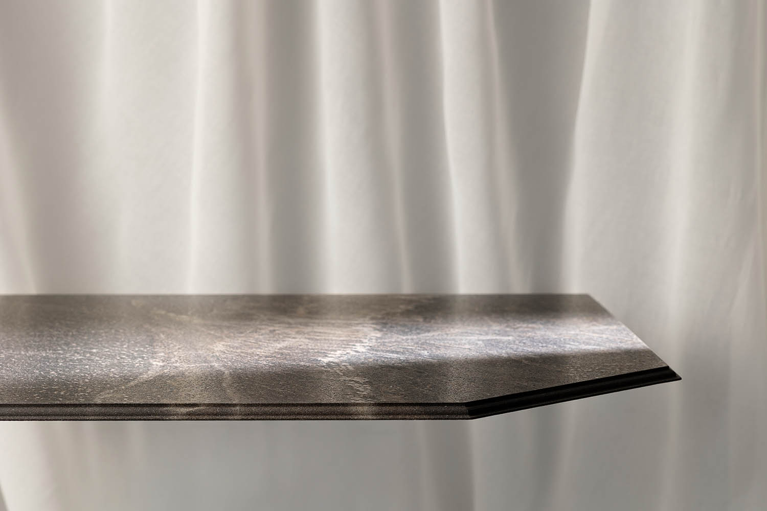Durante siglos, materiales como la piedra, la madera o el mármol mostraban una cara visible que ocultaba su interior. Sin embargo, con 4D Ceramics de Sapienstone, este enfoque se rompe al convertir el espesor en parte activa del proyecto. No se trata de decorar un plano, sino de hallar una continuidad real entre superficie y volumen, algo especialmente relevante en encimeras, mesas o elementos donde el canto deja de ser residual. Una técnica que no se limita a reproducir un efecto visual, sino a definir el comportamiento mismo del objeto.