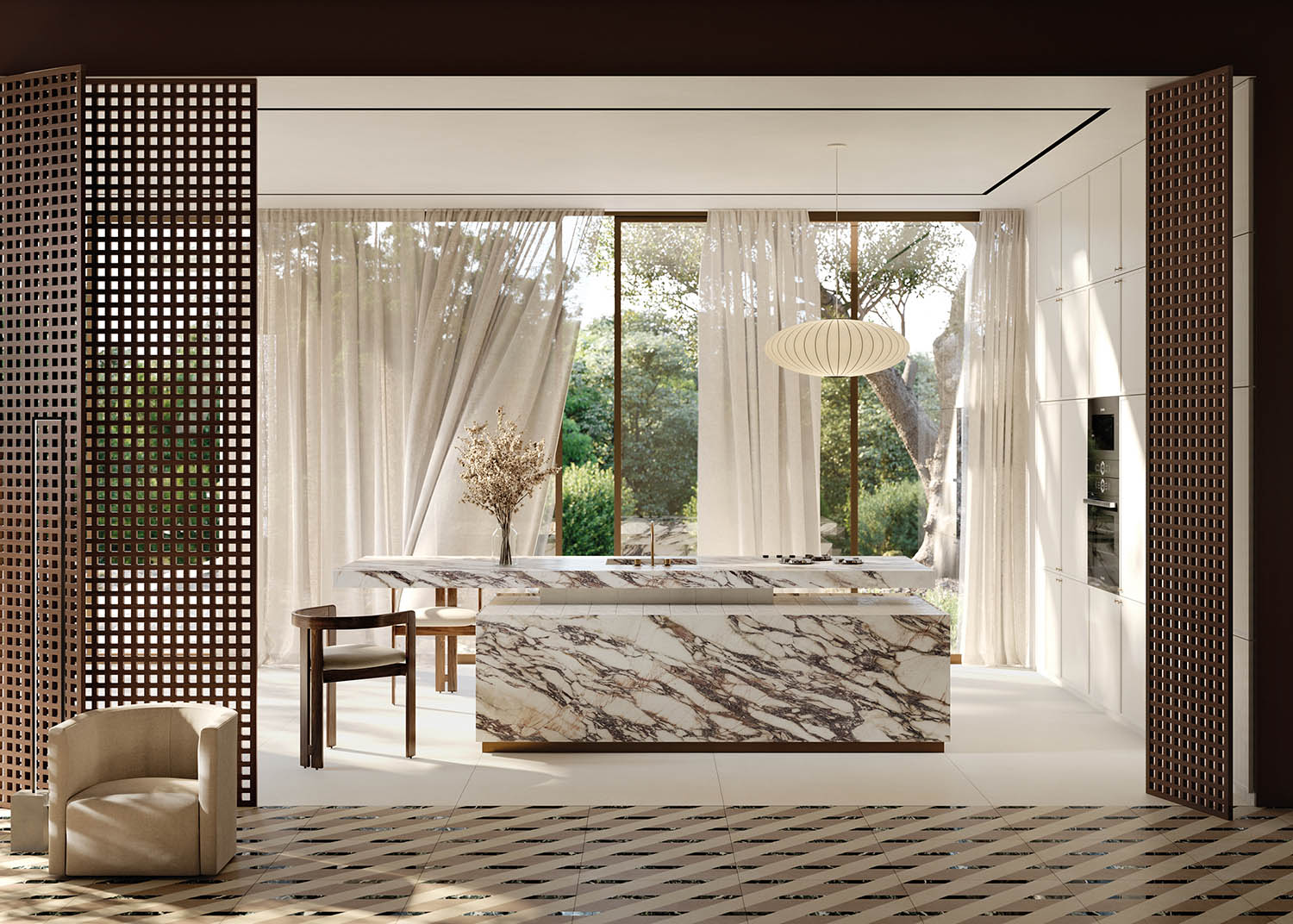 Desde su origen industrial, la cerámica ha servido como ese lenguaje matérico para explicar cómo construimos el mundo. Y ahora Sapienstone ̶ marca distribuida en España por Cupa Stone- ha introducido una nueva capa 4D a sus superficies, dando lugar a un porcelánico donde la tecnología no imita la naturaleza: la reinterpreta desde dentro, con espesor incluido.