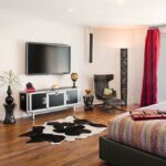 Las grandes superficies que en paralelo recorren el camino hacia la entrada (anteriormente cerradas sin más utilidad que la de trasteros o almacenes) se han convertido en unos impresionantes garajes con elaboradas puertas de cristal y cercos de aluminio: llamativos escaparates high-tech que muestran la preciada colección de vehículos del cliente. El suelo de cerámica con fibra de carbono y las paredes chapadas con aluminio brillante logran reflejar y proyectar los colores de los vehículos en un alarde de sofisticación hedonista. Todo este paseo se resalta con un sistema de LED´s encastrado en el suelo que permite cambios de color: un recurso empleado también en el resto de la vivienda. En este sentido, hay que llamar especialmente la atención sobre el sorprendente trabajo de iluminación realizado por el estudio de Wes Lane: luces en paredes, neones empotrados, lámparas de formas atrevidas como la Zeppelin Light de Marcel Wander o las Glo Drops del propio Lane. Un complejo entramado lumínico como el que vemos en el salón, donde las Glo Drops modifican su gama cromática, a la vez que las Zeppelin Light no sólo varían de intensidad sino incluso de posición respecto al techo.