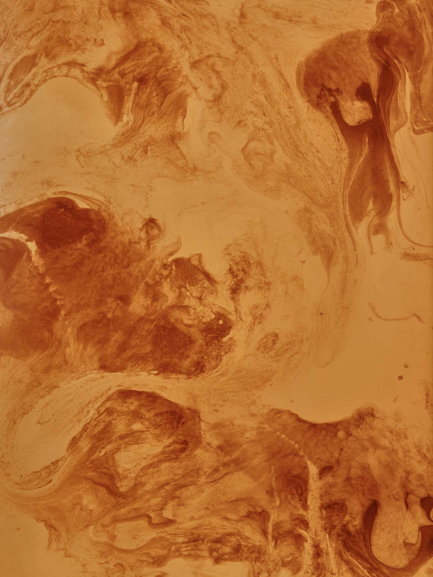 Por eso el visitante avanza por un entorno que parece excavado en una materia blanda y mineral a la vez. En él, las paredes y los mostradores comparten la misma textura: un bioplástico hecho de algas desarrollado con la artista y diseñadora Jessie French. La primera impresión es casi topográfica. Las superficies tienen una cualidad ligeramente húmeda, un brillo que recuerda al coral o a una dermis vista muy de cerca.