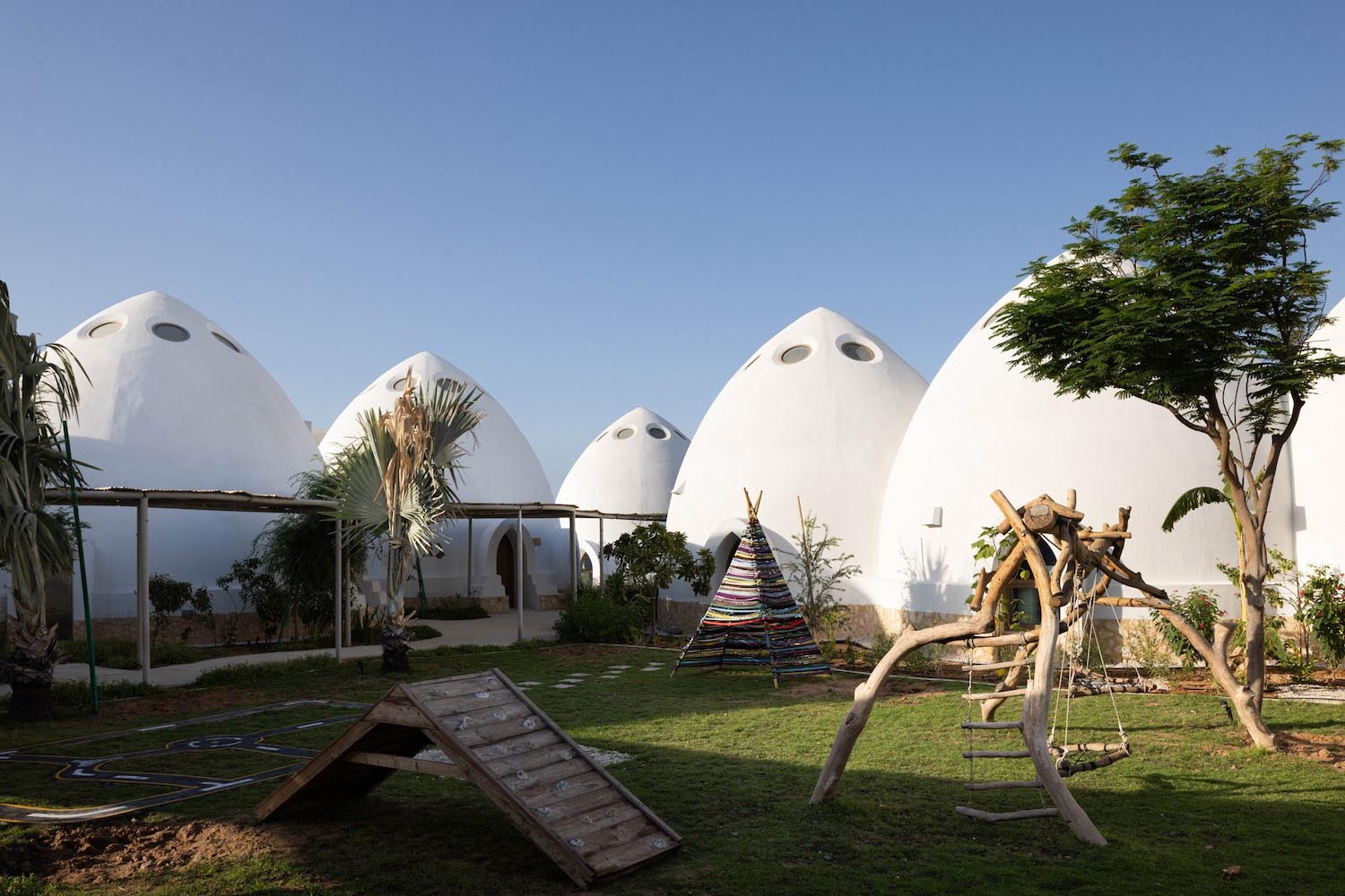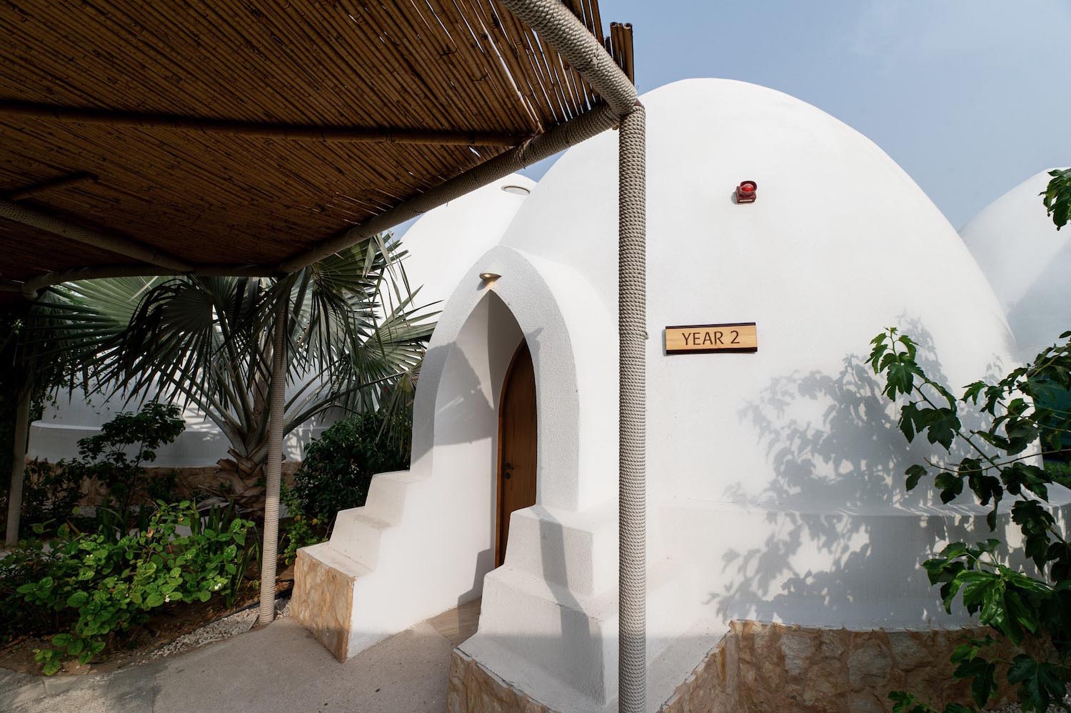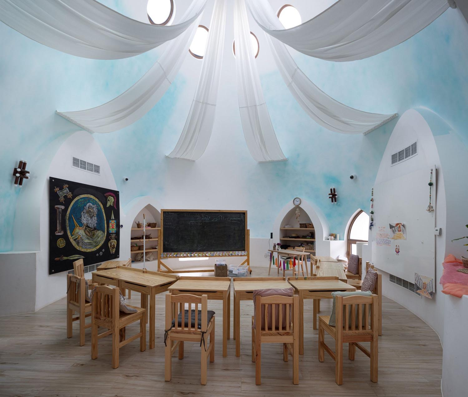 Aún con todos estos referentes, la fantasía se abre camino y cada cual recibe su propia reminiscencia. Ante las construcciones lívidas y abovedadas, se halla una textura suave como la nieve. Pero en medio del clima desértico y subtropical dubaití, la realidad reside en el sólido hormigón, el cual se ha erigido en una serie de aulas blancas con cúpulas puntiagudas y puertas de arcos apuntados. Es a través de este lenguaje orgánico y pulido como el lugar se conecta con la mente de los niños, convirtiendo las rutinas diarias en viajes a través del espacio.