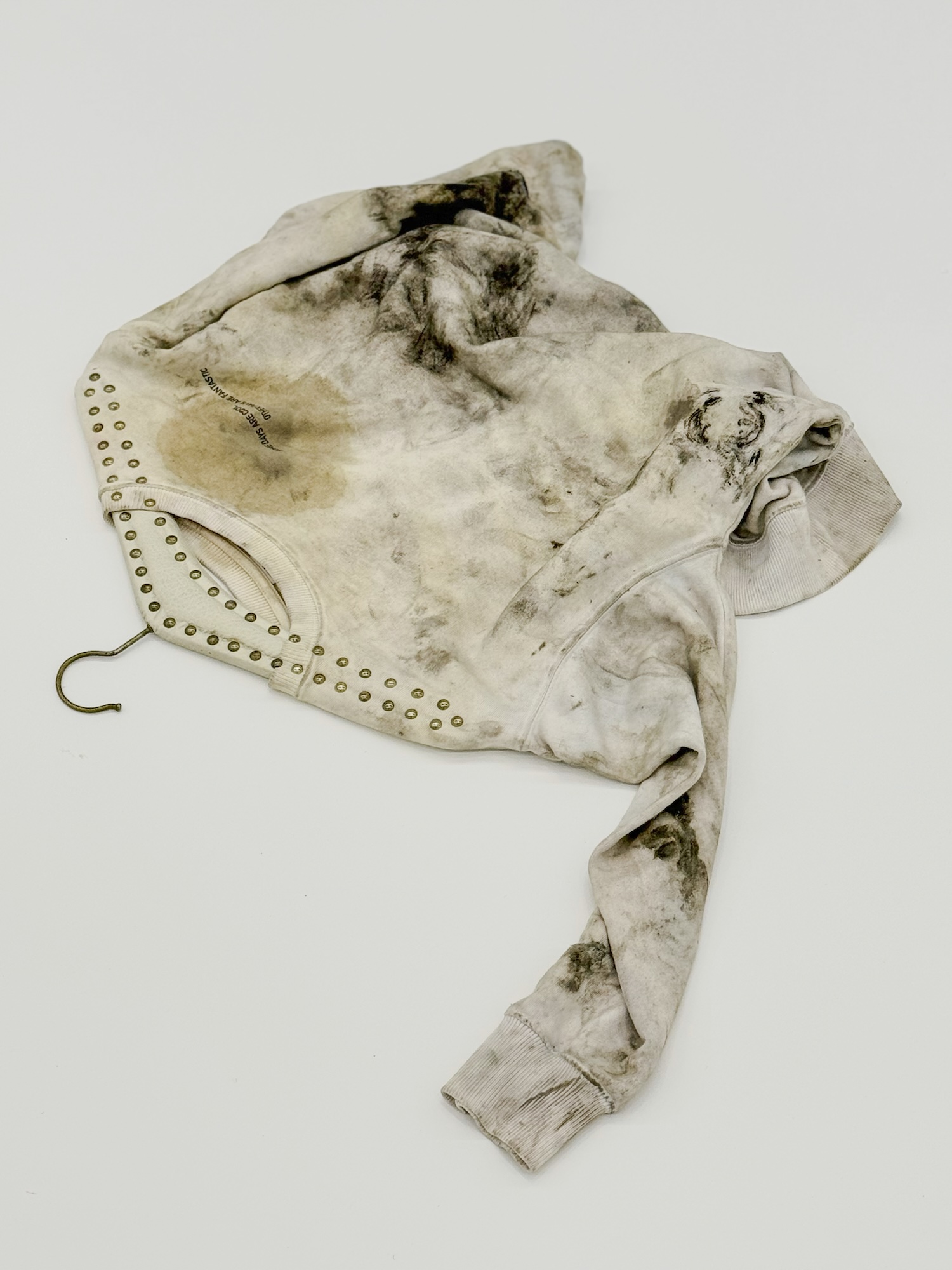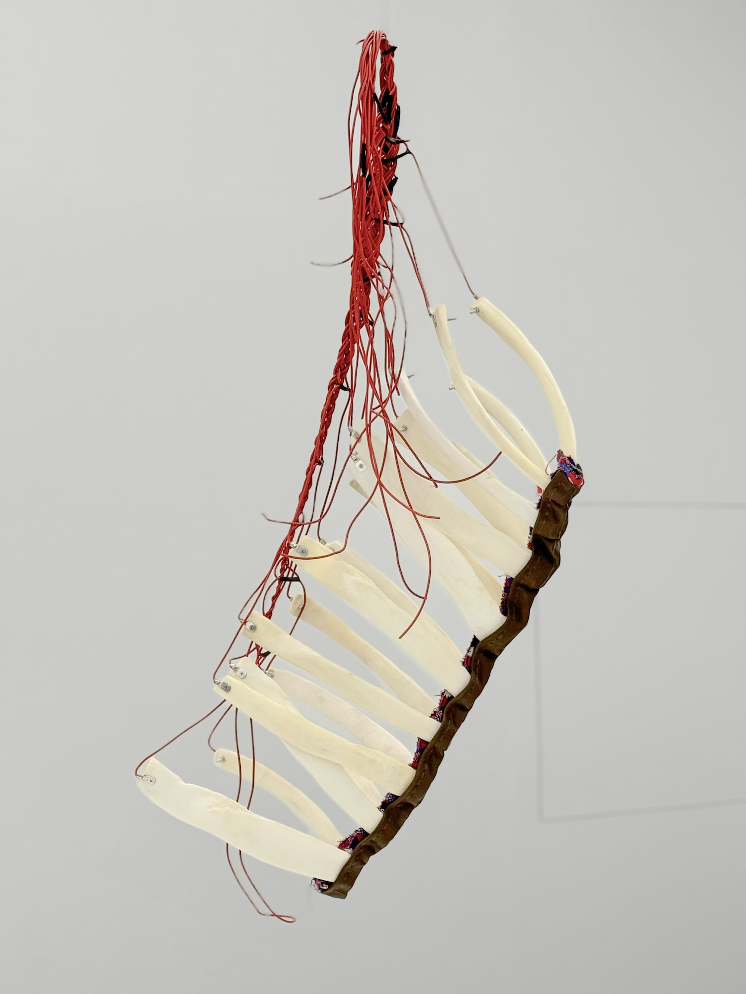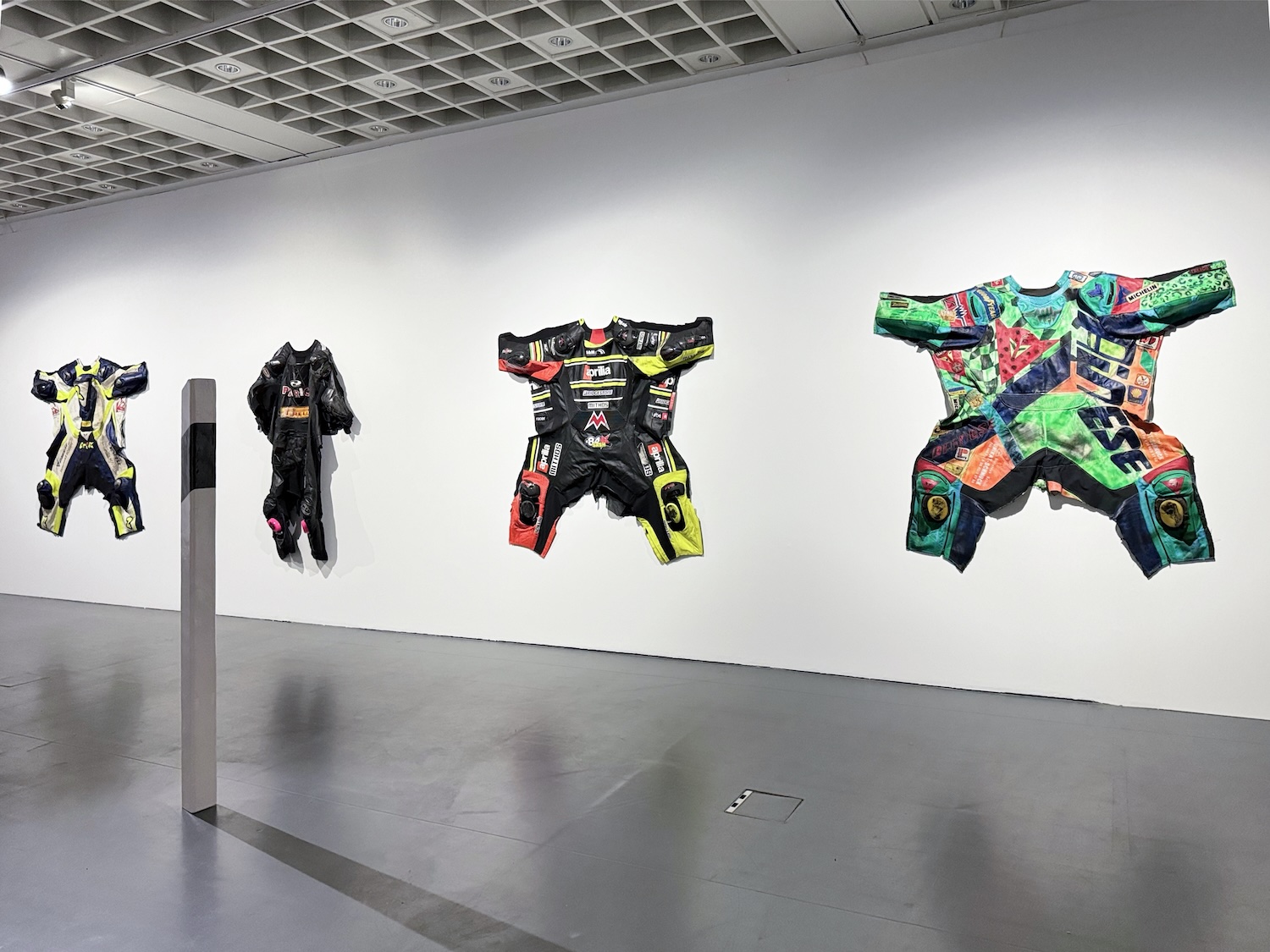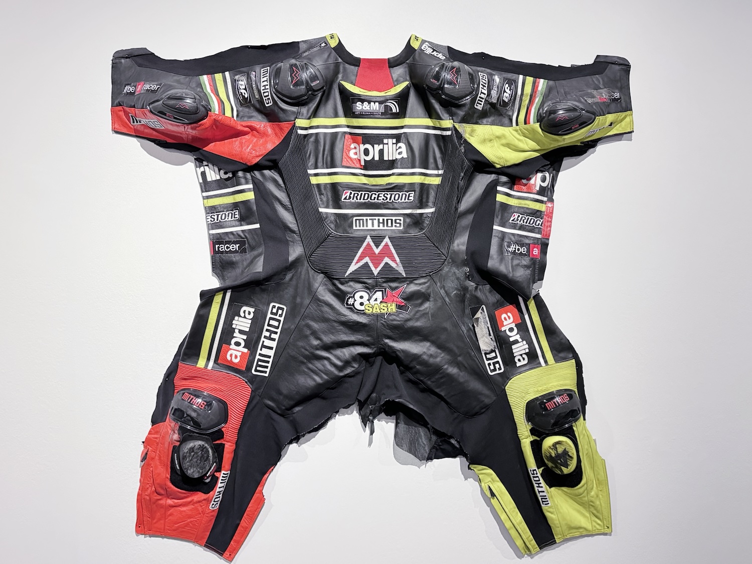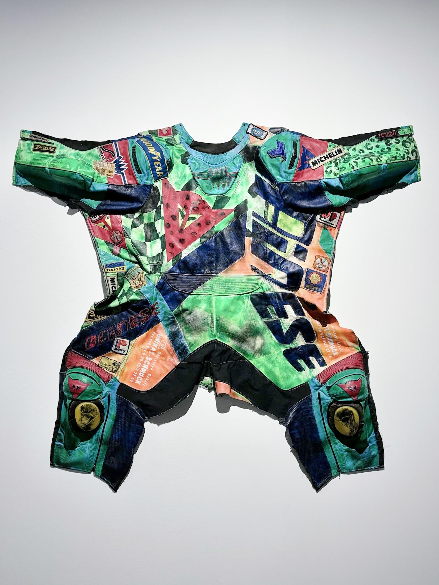 Formada en moda en Central Saint Martins, Bircken trabajó durante años la ropa como artefacto de deseo, apariencia e identidad. Pero en su transición al arte, a comienzos de los años 2000, decidió someter esos mismos materiales —cuero de chaquetas, monos de motorista, tejidos, materiales industriales— al bisturí de la reflexión, transformándolos en posible materia escultórica. Esas prendas mutaron y adquirieron una magia simbólica que desbordó su utilidad. Los trajes de motorista diseccionados y colgados en la pared son la prueba más elocuente: ya no visten a nadie; son la piel desollada de un centauro mecánico. Despojado de funcionalidad y cargado de un aura violenta y vulnerable, el revestimiento corporal ha devenido cuerpo autónomo.