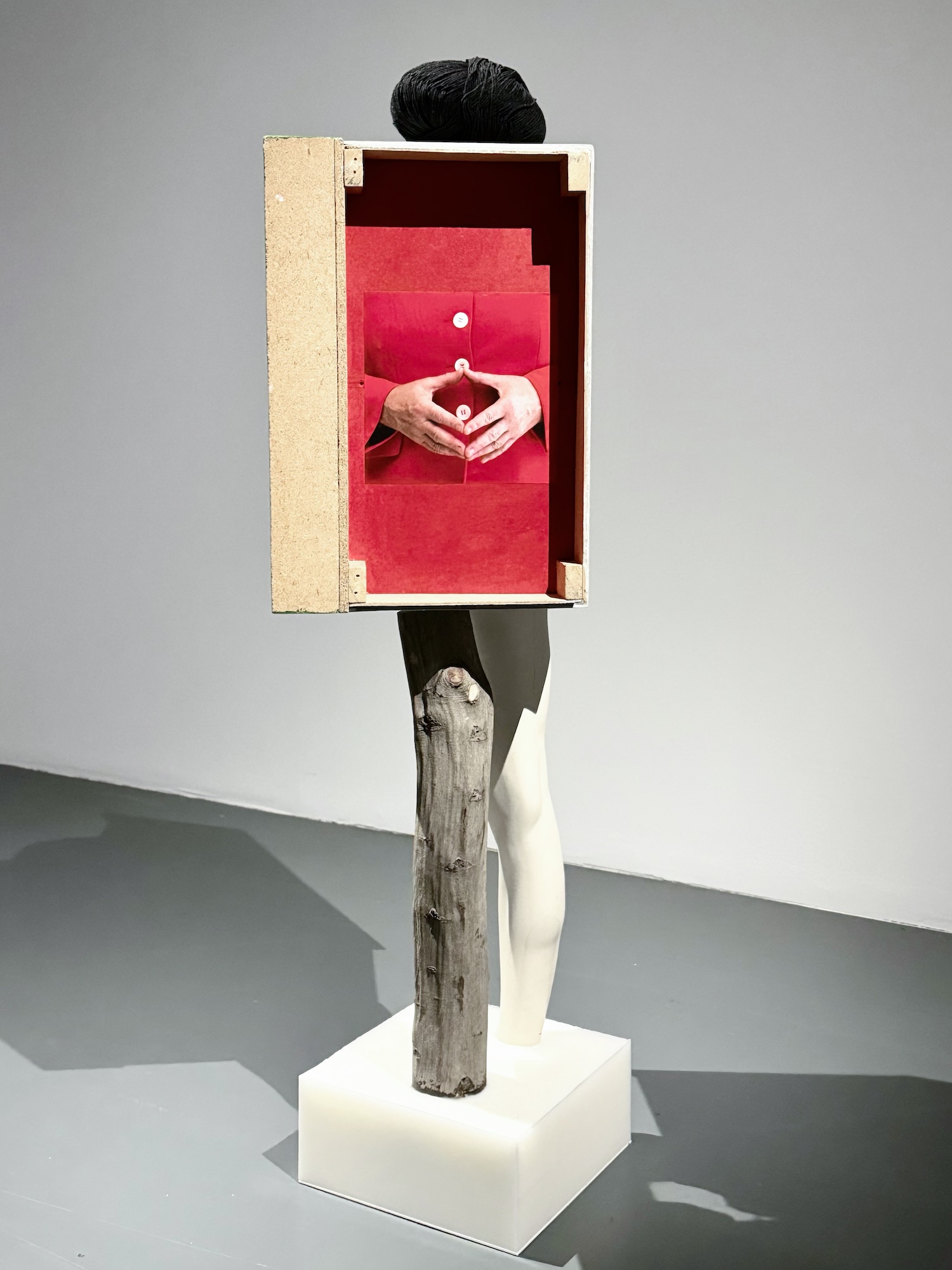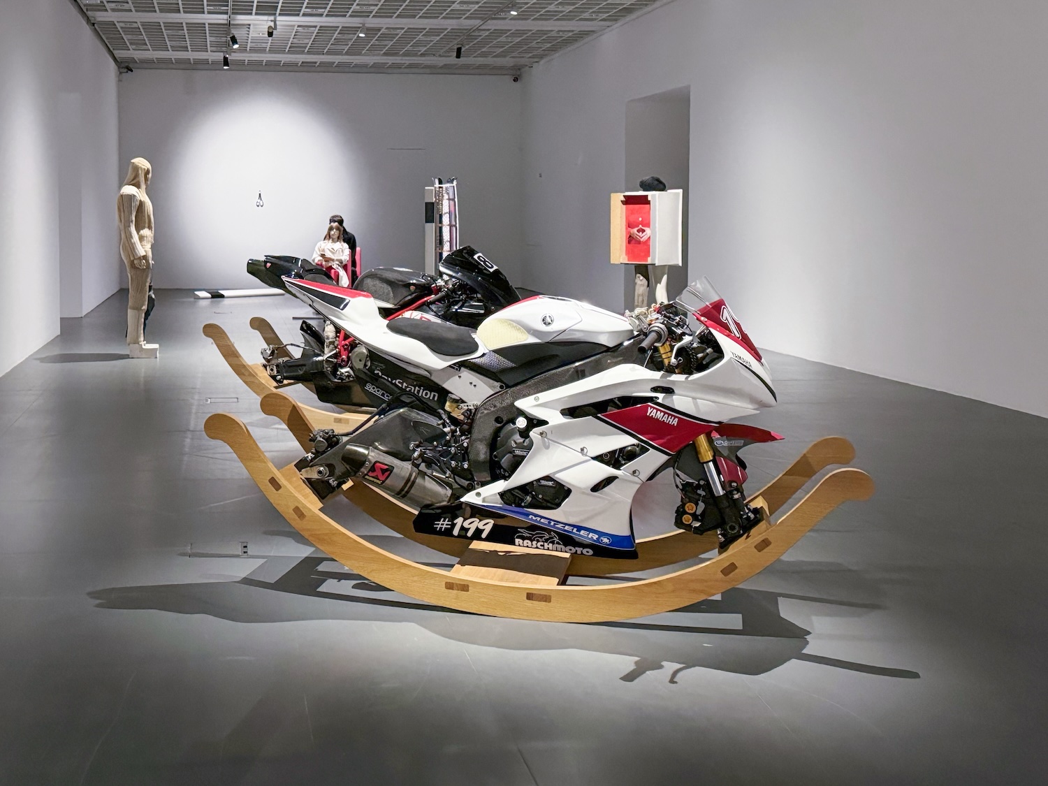 Otra figura, Ulysses, actúa como un dios del Olimpo moderno. Esta moto de hierro erguida encarna la violencia, la velocidad y la potencia masculina como un ídolo al que adorar. En su verticalidad amenazante late una pregunta: ¿qué sucede cuando estos símbolos de poder se vuelven cadáveres escultóricos de metal? Más provocadora aún es Chérie: un tronco de bronce torneado para sugerir caderas, un pene y el nacimiento de unos muslos. Un juego de dualidades donde lo orgánico y lo mecánico, lo masculino y lo femenino, se confunden y se funden. Y ese diálogo entre lo potente y lo endeble, lo construido y lo desgarrado opera como núcleo de la exhibición.
