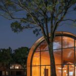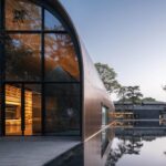 Por fuera nos recuerda a un hangar —el propio Yu Ting reconoce haberse inspirado en el casco de un barco—, pero por dentro se percibe calidez. Su disposición funciona longitudinalmente mientras que el diseño hace que el recorrido se quiebre, para caminar sobre la lámina de agua, escondida entre los árboles y los restos de algunas construcciones que se reflejan sobre el estanque. Todo espectáculo, puro artificio.
