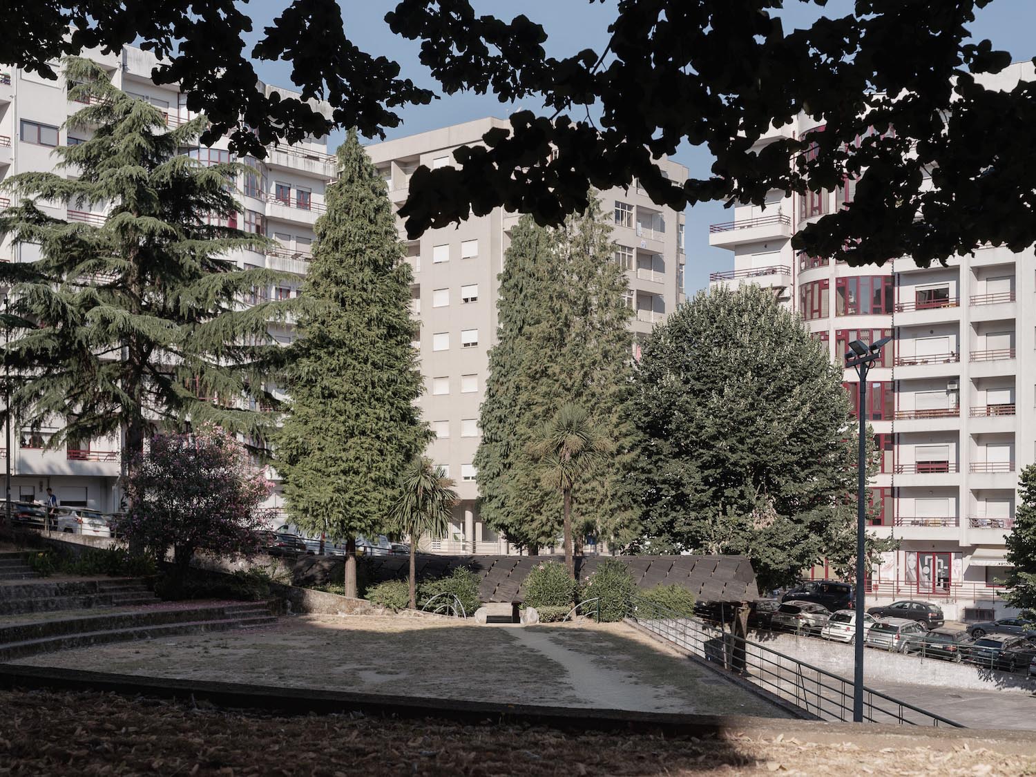 La plaza de Fontainhas toma el nombre de la fuente de Atlas, que aún se conserva entre los muros de la antigua villa. El proyecto hace lo propio con la escultura, ya que los restos suponen una brecha en un espacio nivelado en dos plataformas, siendo el acceso más directo entre las dos zonas. Se trata de un elemento lleno de identidad que, además, resuelve el desnivel de la manera más eficaz. Esto, junto a una charla con los vecinos en la que solicitaron una zona pública de reunión, fue el punto de partida para convertir este espacio de trinchera en el epicentro de la nueva plaza.