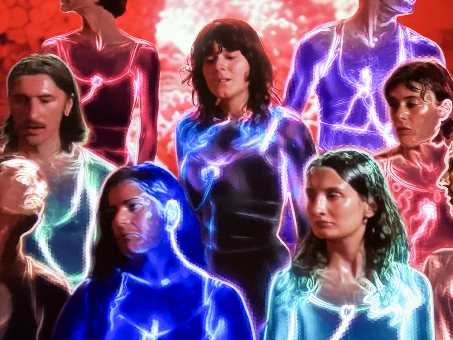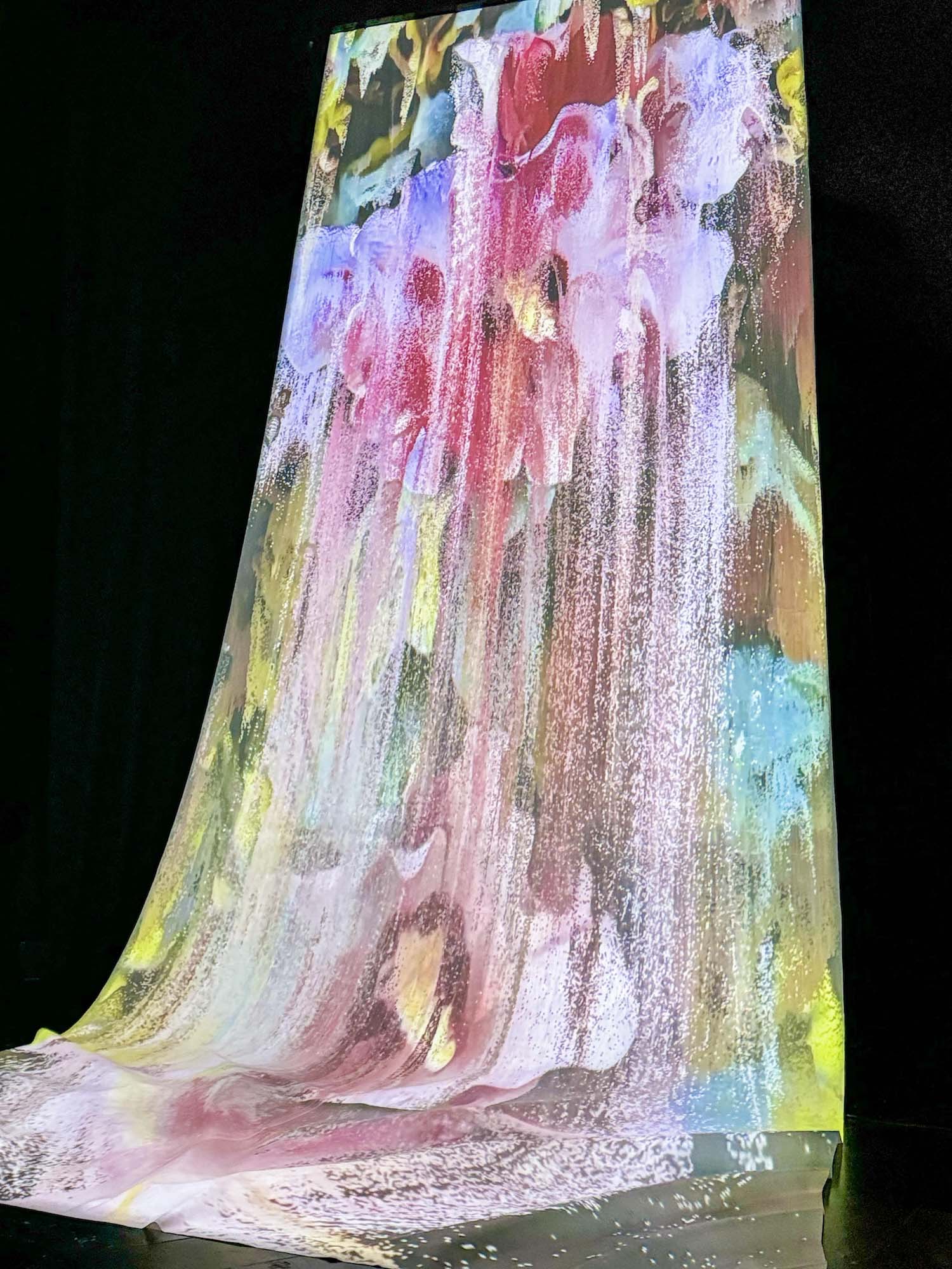 Si algunos trabajos muestran la imaginación tecnológica en acción, otros recuerdan sus riesgos y límites. Ismaël Joffroy Chandoutis, con Rewild (Île d’Utopie), pone en tela de juicio la obsesión por las granjas virtuales mientras la agricultura real se desangra. Beatie Wolfe, con Smoke and Mirrors (D A T A S K Y), contrapone décadas de datos climáticos con la propaganda petrolera que nos prometía un futuro brillante bajo nubes de metano. El vértigo cuántico está presente en intervenciones de Le Cantique des quantiques que no explican la física de partículas, sino que la vuelven una experiencia sensorial, como si Schrödinger hubiese abierto la caja solo para liberar una rave de fotones. Y la gran jugada de Les illusions retrouvées reside en su capacidad para transmutar la especulación tecnológica en fábula contemporánea.