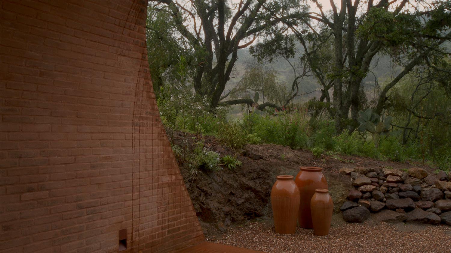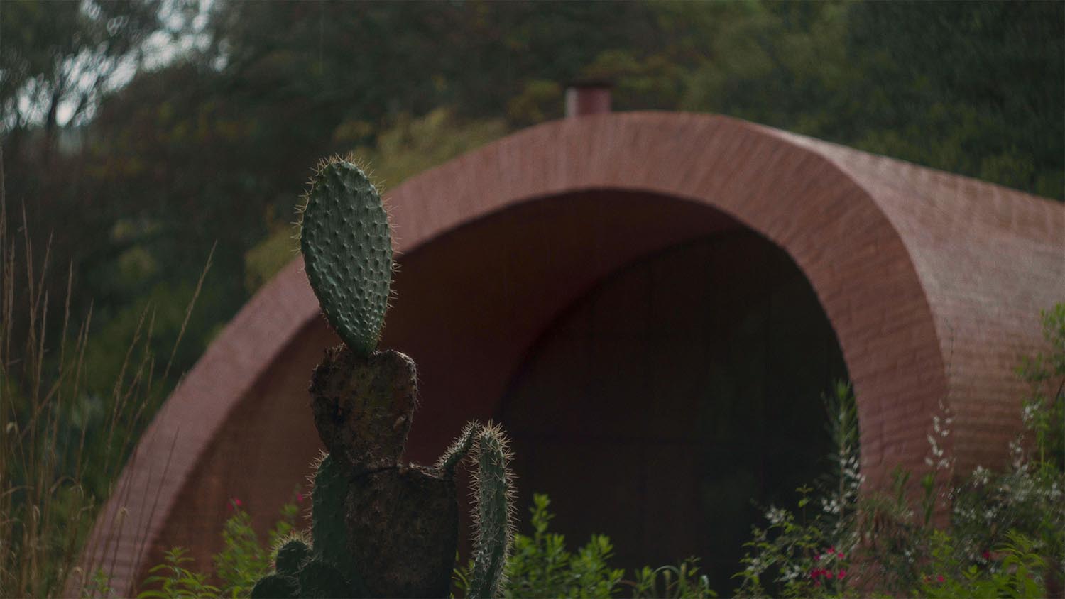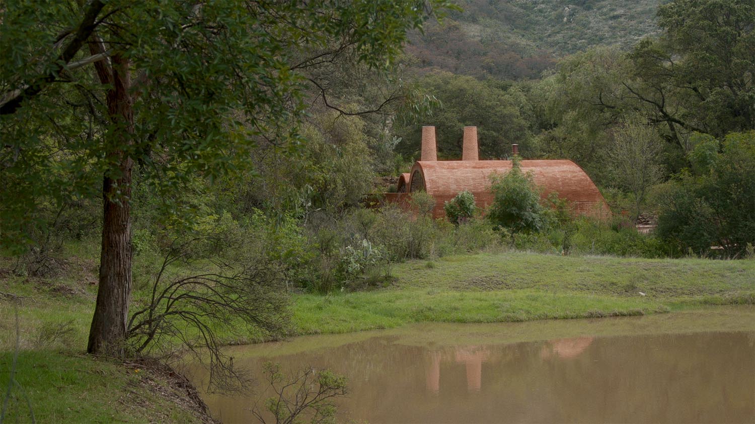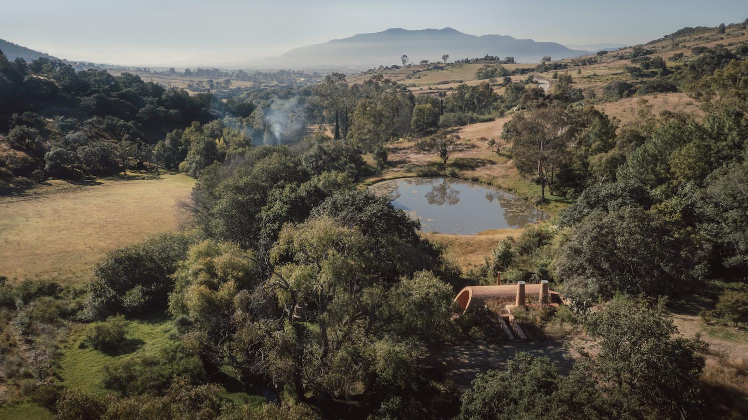 Es esta visión la que define la Casa de Barro: un pequeño pabellón de descanso situado dentro de un rancho agroecológico en Amealco, en el estado mexicano de Querétaro. El punto elegido para ubicarlo —una depresión junto a un arroyo estacional— sugería una acción muy discreta para no alterar el paraje y poder así subrayar su carisma. De esta comprensión surgió la idea de plantear este alojamiento de 90 m2 como una cueva. ¿El objetivo? Que la arquitectura interfiera visualmente lo menos posible.