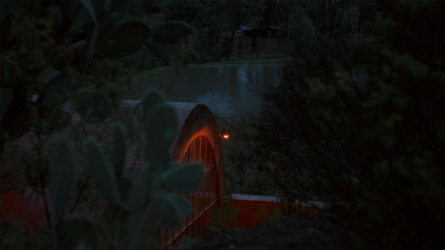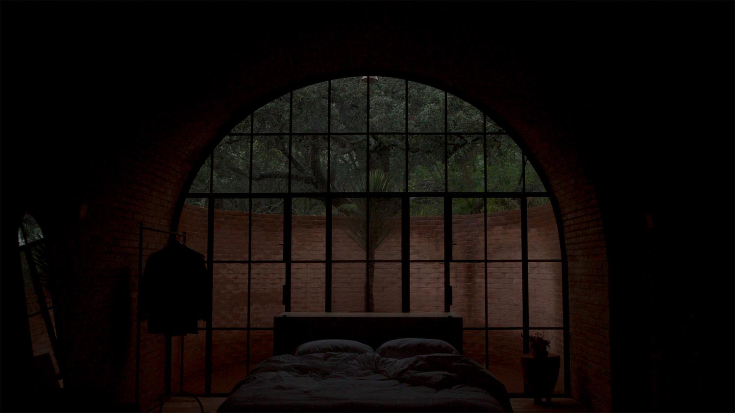 El espacio se dispone bajo esa gran bóveda de cañón, que marca con suma modestia su presencia hacia el exterior. El ambiente que se origina —donde se disponen cocina, sala, dormitorio y baño— se prolonga hacia fuera para culminar en una terraza cubierta. Un ámbito donde arquitectura y enclave vuelven a reunificarse, esta vez para incorporarse a la experiencia doméstica. La textura y tono del material, además de la curva de dicha bóveda, generan en el interior una atmósfera de serenidad que se refuerza por la delicadeza del mobiliario de madera, los azulejos artesanales y los detalles elaborados en hierro forjado.