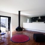Para ello se diseñaron unos forjados interiores que sirvieran de estructura y a la vez de división de los espacios, generando una continuidad en sus tres plantas; una continuidad que puede interrumpirse para crear dos hogares independientes, uno de los requisitos de los clientes. Por otra parte, se han respetado casi todas las paredes de piedra infundiendo un acervo tectónico a un proyecto contemporáneo, salvo en la primera planta donde se proyectó un gran ventanal que favorece por su luz a la cocina, a la sala de estar y al comedor.
