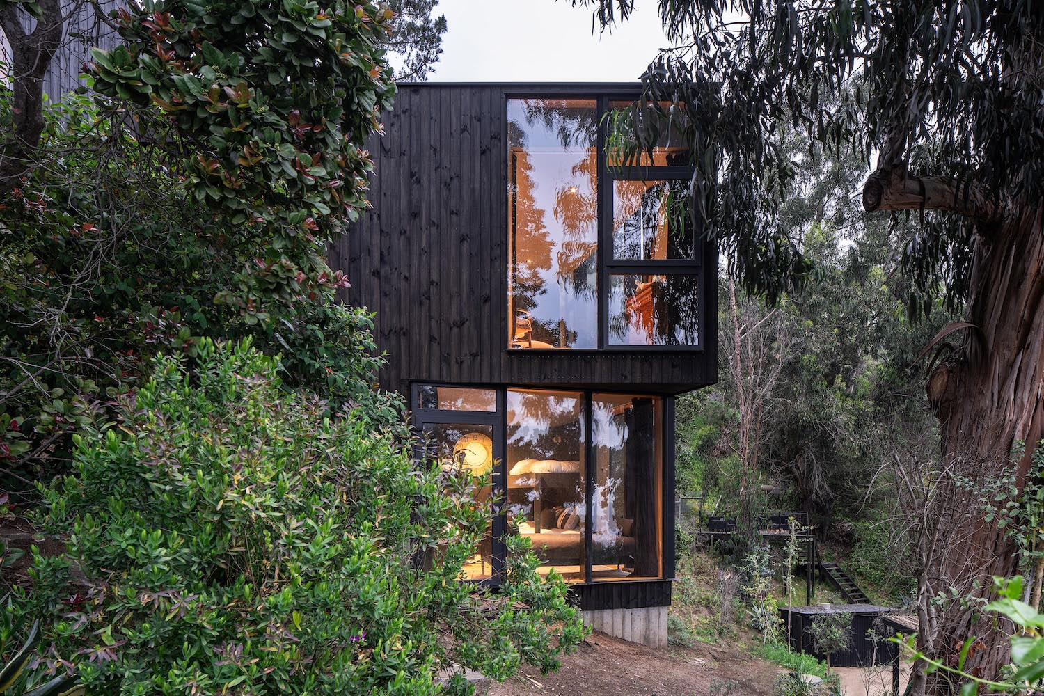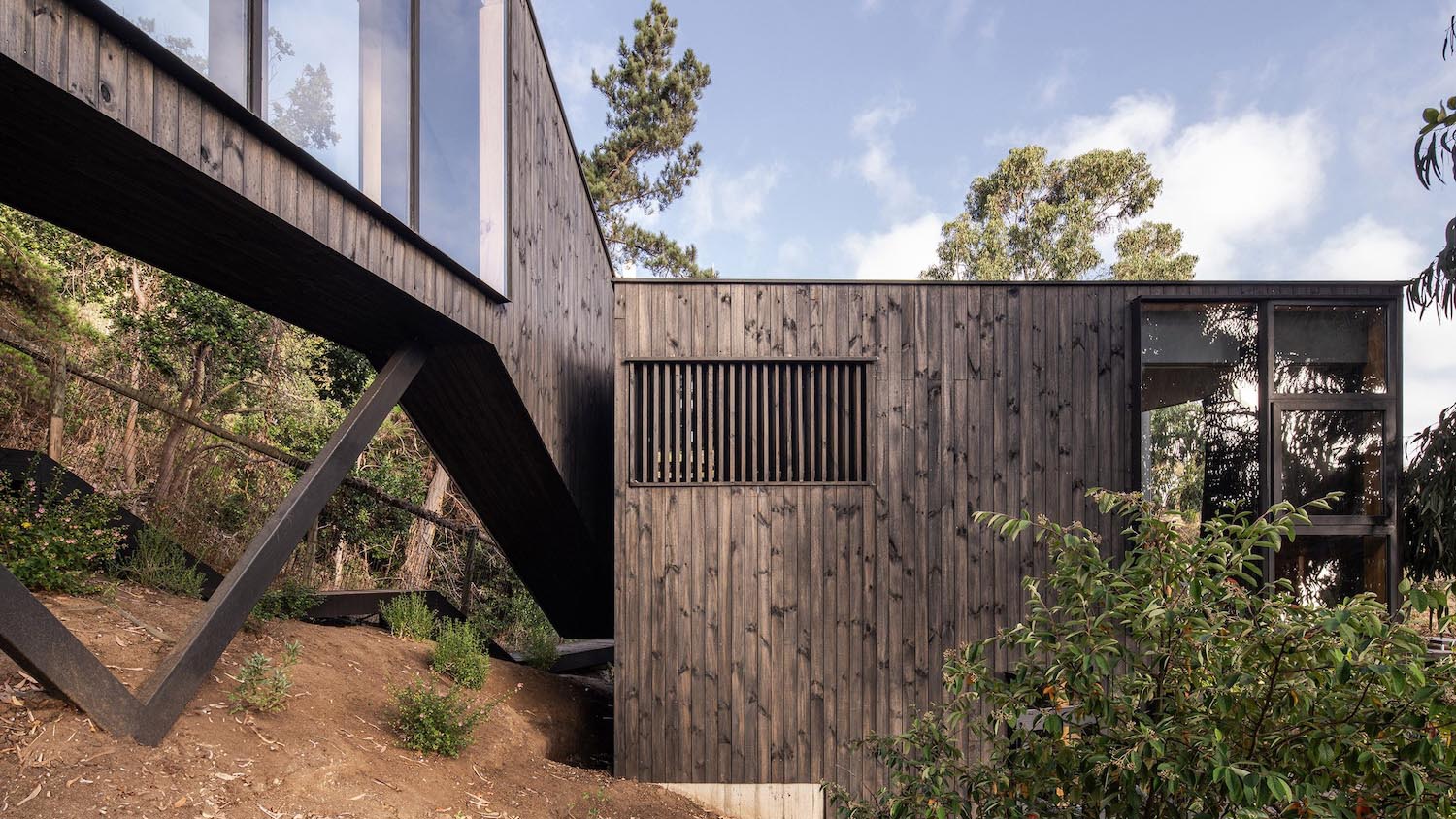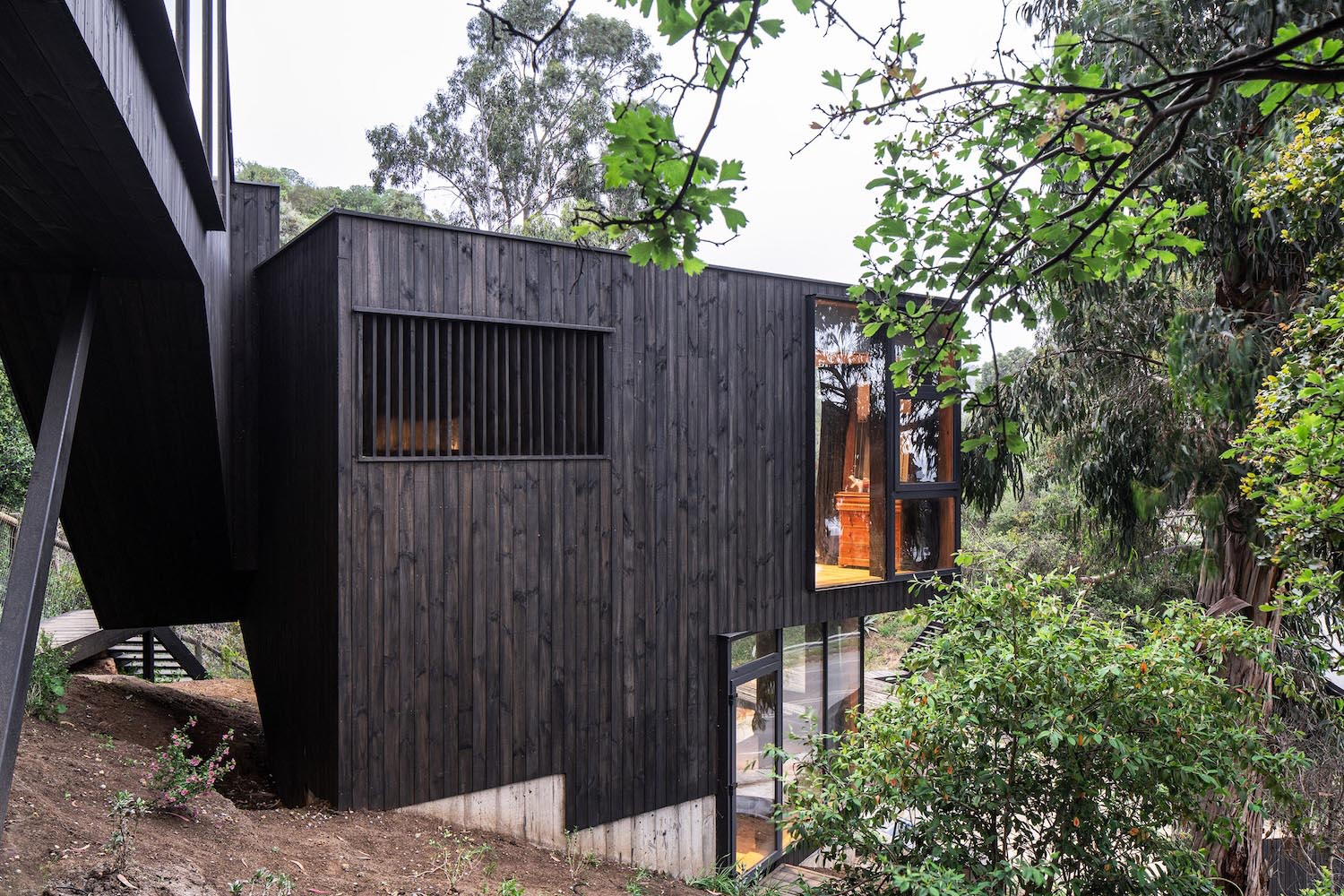 La Casa Tres Alturas nació para completar una cabaña que volaba sobre un terraplén en las afueras de Zapallar (Chile). Con esta propuesta, el estudio de Ignacio Correa ampliaba un volumen que se había construido en forma triangular; una geometría difícil pero que posibilitaba abarcar la mayor cantidad de vistas posibles hacia el paisaje costero. Y el proyecto debía trepar por la pendiente de un terreno muy escarpado sin desvirtuar la esencia del edificio original.