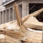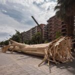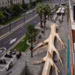 Podría decirse que, después de haber pasado las vicisitudes y complejidades de la pandemia, los participantes de Concéntrico 07 han sabido, no solo jugar con la tipografía del afuera y del adentro para privilegiar la interacción y la convivencia, sino que se vislumbra un criterio más conceptual al plantear las propuestas. Cierta dimensión de trascendentalidad humana — y espiritual — a través del proyecto, como lo manifiesta Árbre, ese gran tronco de madera caído en una de las aceras de la Gran Vía de Logroño. “Un sitio mineral” según el autor, el francés Lauren Martin, como un reclamo para preservar la naturaleza, para incorporarla en medio del cemento y la aridez de las calles. Una llamada a la vida que tendríamos que tener en cuenta para cuidar el planeta. 150 tablones de madera de Garnica en desuso van dando forma al cuerpo y a las ramas de este árbol gigante que apela a nuestras conciencias.