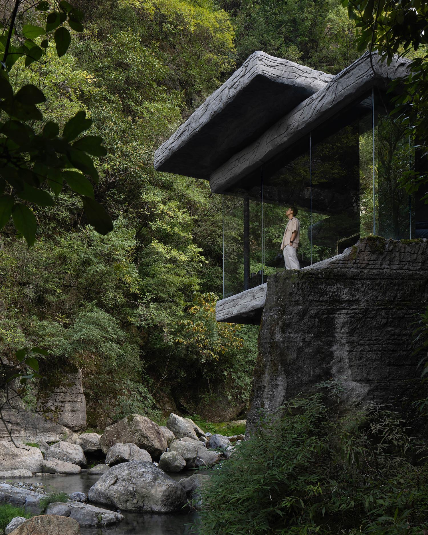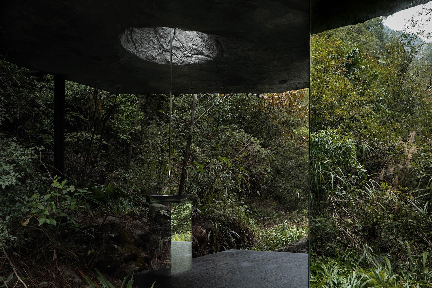 Radicado en la ciudad de Chongquing, en el distrito de Nanchuan, Drifting Stones Pavilion “es un proyecto de escala modesta, pero que aspira a redefinir su contexto de una manera radical y a la vez armónica. Una vez finalizado, todo sigue igual: el gran peñasco y el suave murmullo del arroyo. Confiamos en que los visitantes, mientras observan esas nubes pasajeras y las sombras de los árboles reflejándose en los espejos interiores, atrapen un fugaz momento de paz interior.”