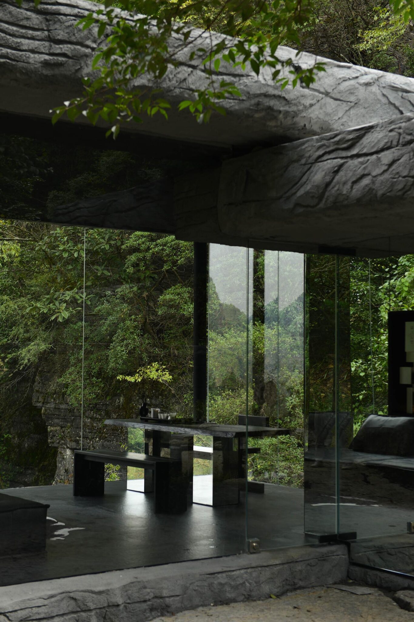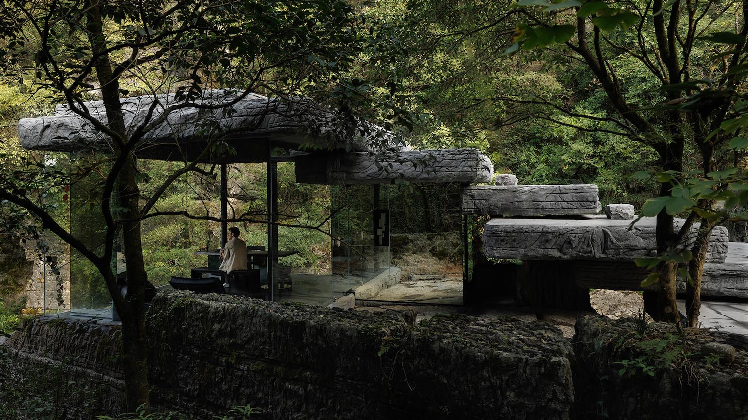 Entre el bosque y la piedra, Drifting Stones Pavilion se alza como una arquitectura en suspensión. DoDesign transforma un hallazgo natural en una experiencia sensorial, donde la roca, el acero y el cristal dialogan con la montaña para invocar esa antigua idea oriental de los edificios que crecen desde la tierra.
