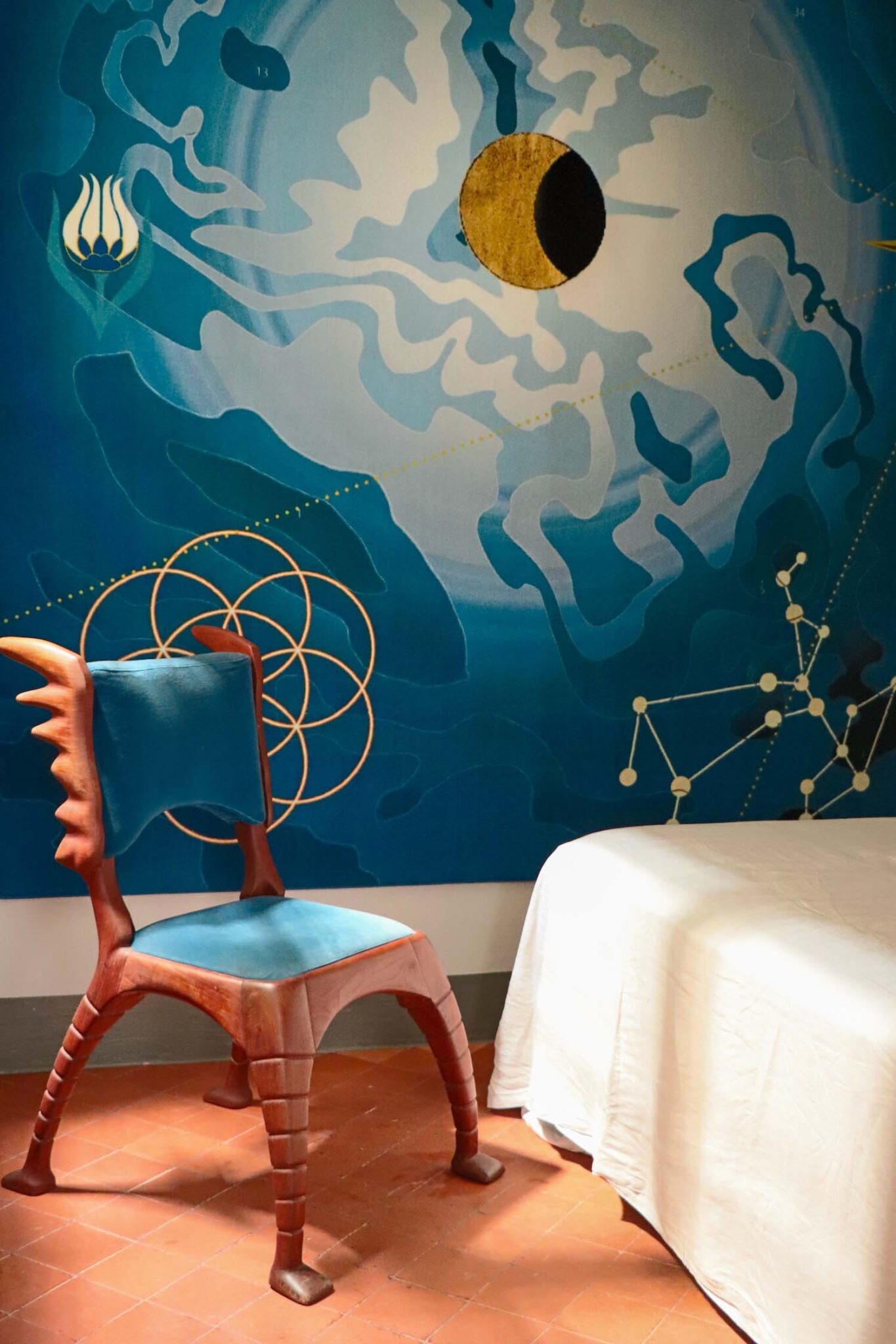 El estudio de Edward Van Vliet se publicita como un creating worlds y, según podemos ver en su web, describe sus acciones como “una sinfonía de inspiración, tejida a partir del inagotable tapiz cultural y natural que nos rodea”, cuya esencia práctica reside en “entrelazar colores, texturas, patrones y formas en una alquimia de innovación que da lugar a universos sin igual.” Posiblemente, dicha autopercepción sea real y Van Vliet tenga algo de valiente al no definirse en un estilo al uso. El belga se deja guiar por la intuición histórica en ese tejer lo nuevo y lo viejo mediante color y textura. Como un sastre que, con la intención de recuperar un antiguo vestido, añade nuevas telas para poder seguir bailando.