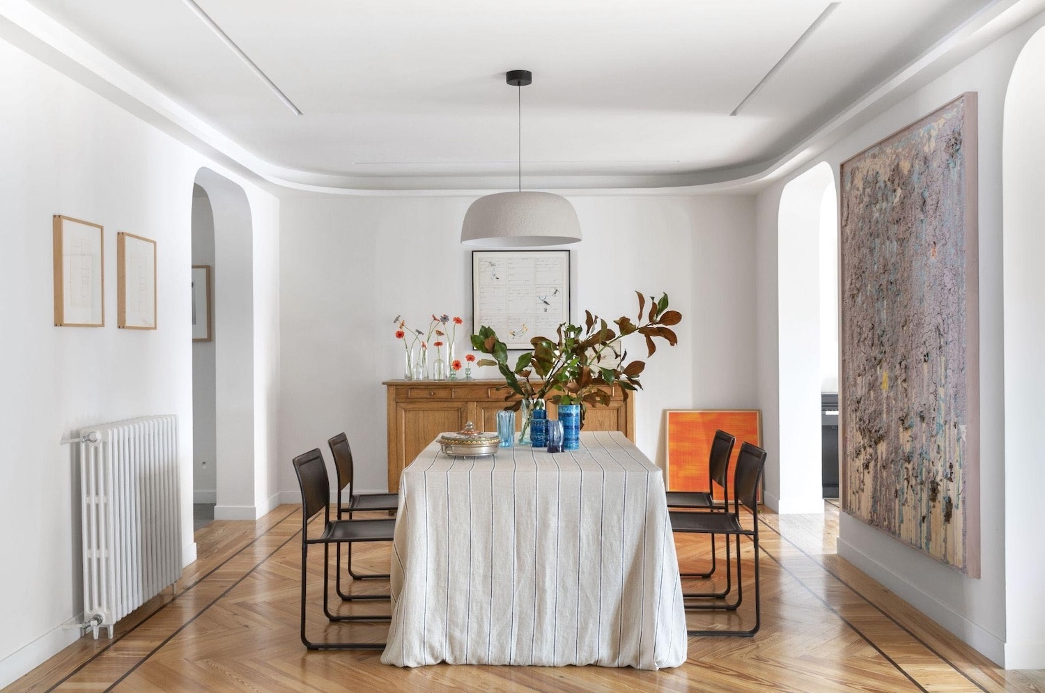 Ágave Blanco —su trabajo más reciente— fue diseñado para una familia procedente de México, que buscaba un refugio en el corazón de la capital española. Este proyecto se concibe como su pied à terre: un espacio que se convierte en el lugar perfecto para sus visitas periódicas a España. El desafío principal se centró en crear una vivienda que mantuviera los rasgos que enamoraron a los propietarios en Casa Serena —un trabajo anterior—, pero dotándola de una personalidad propia y diferenciadora. Para ello se tomaron como base recursos clave: baquetones de escayola, tarima en espiga y partes en negro.