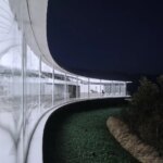 Como objeto solitario depositado cautamente en un enclave privilegiado, lo primero que vemos es un artefacto curvilíneo contundente: sinuoso como una gota de agua a través de dos volúmenes muy livianos que se mezclan cuidadosamente originando una única estancia. Lo que en un primer momento pudiera parecer abstracto y casi reductivo, se anima —es decir, se carga de alma— cuando el proyecto asume la contaminación que la geometría reclama: un estrecho pasillo que conecta la cafetería y la zona de lectura.