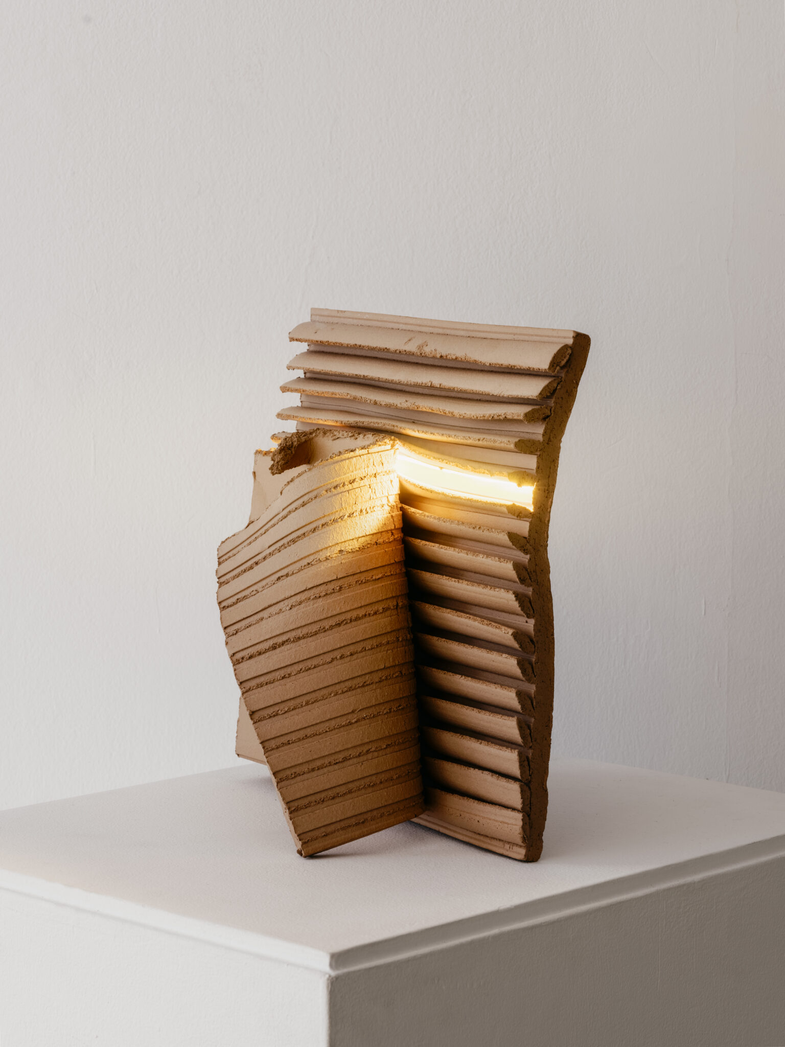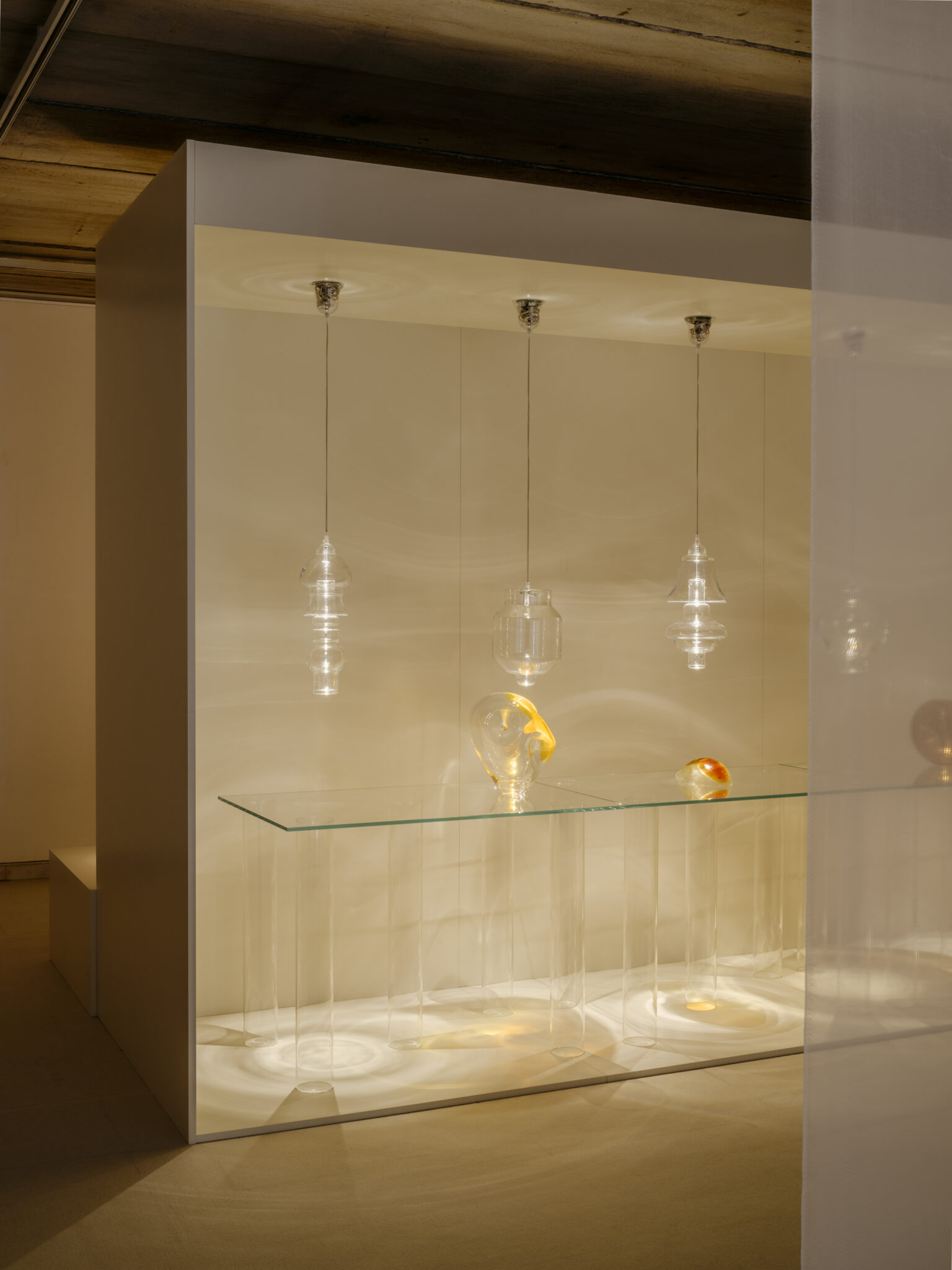 En el tránsito, las escenas van alternando la cadencia luminosa en un juego que va de lo consistente a lo liviano: los tótems lumínicos de gres cerámico para la marca Nuet, la metálica luminaria Stripe para Leucos o la textil Seda para Abbatte. Pero también hallamos el bulboso árbol Albaras para la Joyería Suárez, la icónica Filamento o, más allá, sus creaciones junto la Real Fábrica de Cristales de la Granja o su lámpara El Deseo para Pedro Almodóvar. Before the Light es una inmersión para comprender la práctica de Marta e Imanol, conectando con sus aproximaciones, sus correcciones y sus hallazgos. Pero, sobre todo, es una manera de aprender la lección valiente que late en su trabajo: el objeto nunca finaliza porque siempre está en continuo tránsito.