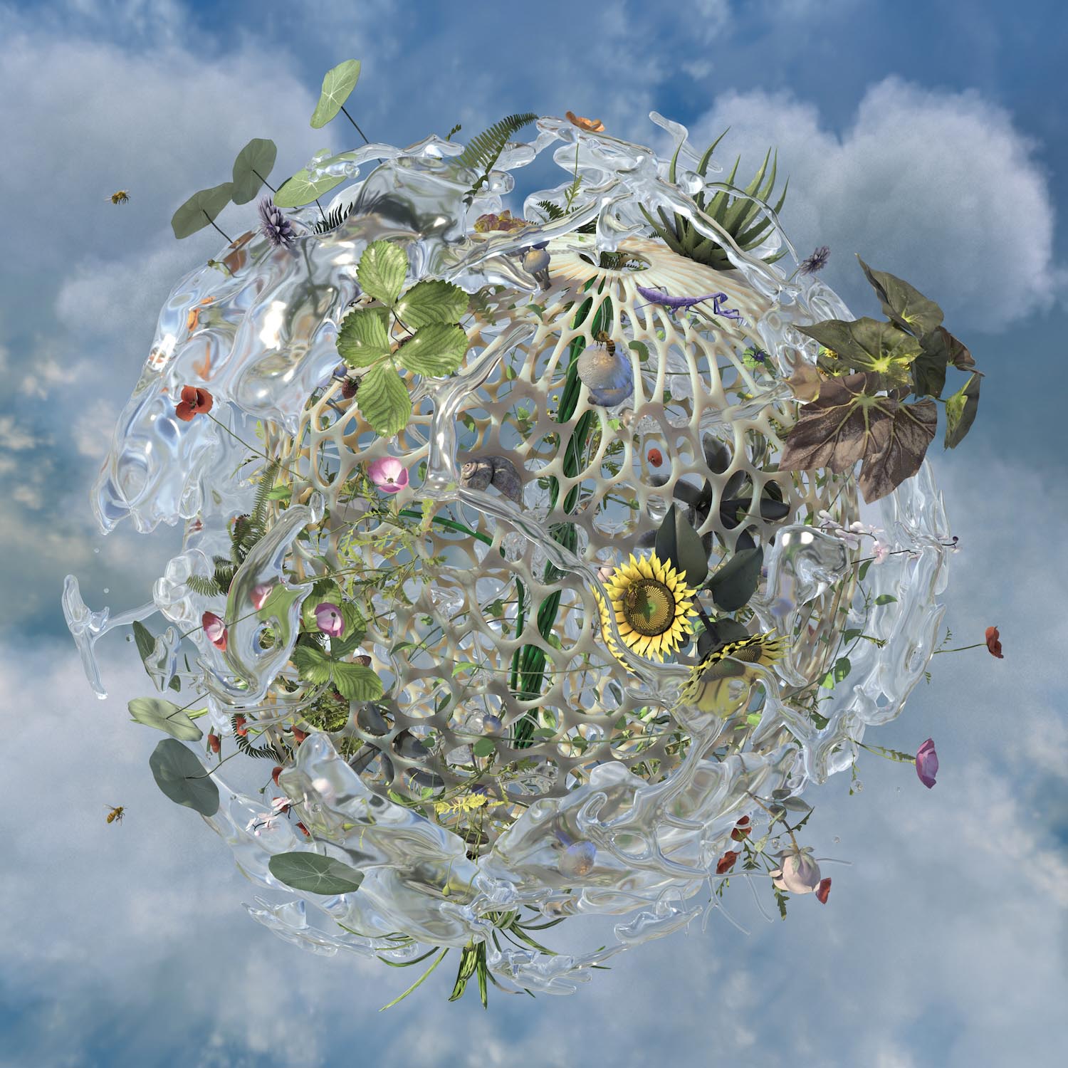 En esta narrativa, la naturaleza tiene un papel destacado; las problemáticas derivadas del cambio climático le preocupan, y lo llevaron a crear la serie E-Sphere. Con ella, ideó hiperobjetos como biomas autónomos o micromundos. Estos “reinos imaginarios” abordan fenómenos que van desde las mutaciones ecológicas hasta las intricaciones del capitalismo, subrayando los profundos y, a menudo, devastadores impactos del colapso ecológico. “El cambio climático no es solo un concepto científico abstracto: es una fuerza visceral y tangible que está transformando nuestros paisajes, el ritmo del planeta y nuestra propia forma de vida”. Un discurso que caracteriza su producción y que vemos en piezas como Black Hole, Electric Silence o Mantis.