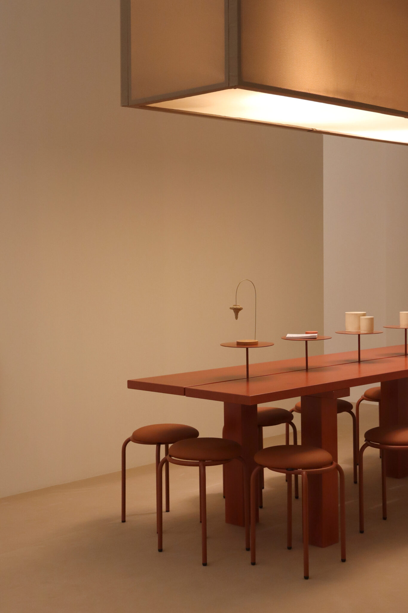 La tríada habitual de simplicidad, elegancia y juego de Clap Studio se condensa en el taburete Eclipse para Teulat. En él ponen a prueba el contraste entre luz y sombra desde la síntesis más absoluta: su estructura metálica y su asiento tapizado. El enfoque habitual de Clap Studio y el minimalismo de Teulat dan lugar a una pieza atemporal que destaca por su proporción cuidada y detallista. Rasgos que hacen de Eclipse un objeto cotidiano que sugiere una atmósfera sin sobrecargar y que nos acompaña siempre desde una discreta elegancia lúdica.