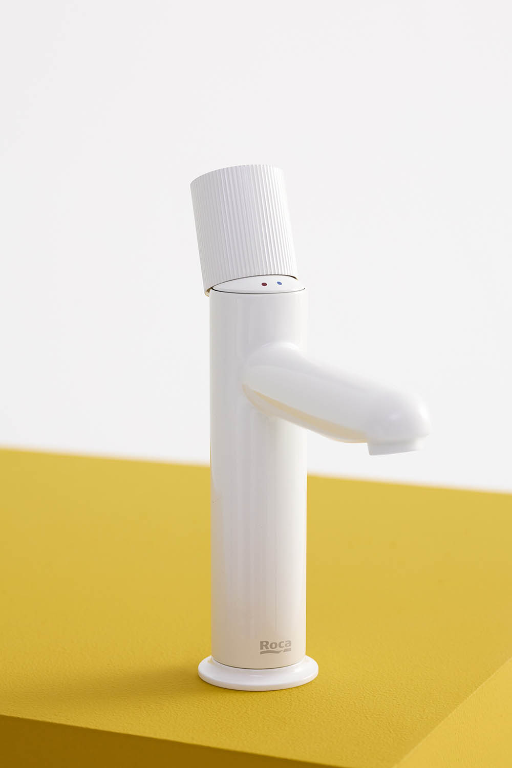 Pero no nos hemos quedado ahí. Ya en un nivel más técnico, hemos conseguido crear el modelo más estrecho de Roca. Y su caño de diámetro reducido acaba de manera esférica, un detalle que, creemos, será icónico, puesto que no hay nada similar en el mercado. Otra cuestión importante para nosotros ha sido incorporar la tecnología ColdStart, que permite un ahorro energético y de agua, ya que la apertura frontal se reserva para el agua fría. Rentabilizar los recursos debe ser un must.