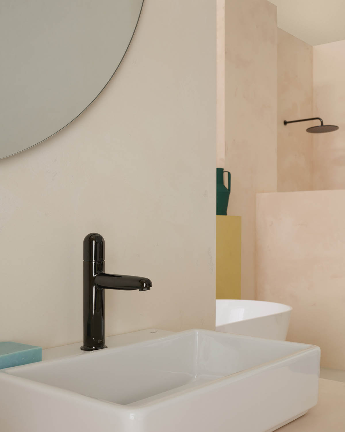 Como lo es, también, la versatilidad. En el caso de Nu, se refleja en la variedad de manetas: una más estándar con pin, otra con grabado de estrías —de estilo más arquitectónico— y mi favorita: en forma de dome. Todo ello, combinado con las seis tonalidades, convierten esta colección en una familia lúdica de muchos miembros. Porque ¿quién ha dicho que el diseño, aparte de funcional y bien ejecutado, no puede ser divertido y desenfadado? En este sentido, otro aspecto que me encanta es la sonrisa que se esconde bajo la maneta y que, al activar el mecanismo, aparece para dar los buenos días y las buenas noches a los usuarios.