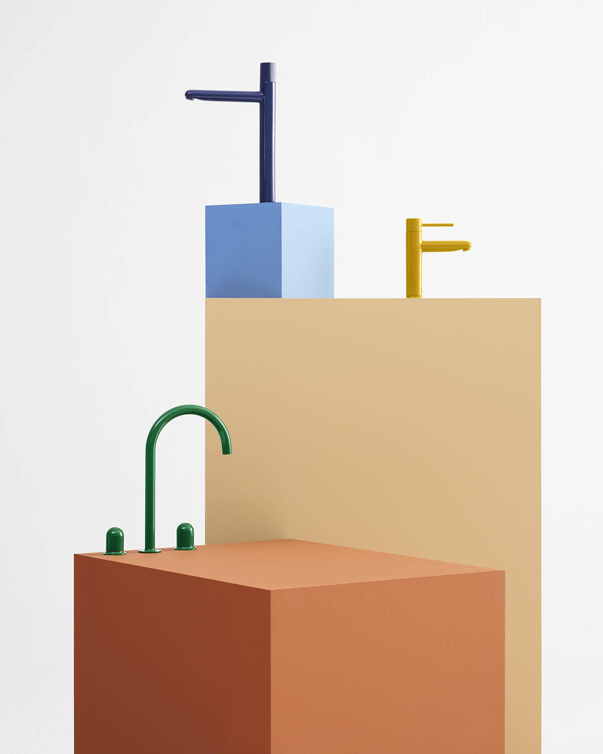 Nu nació tras ganar un concurso convocado por Roca. Inicialmente, el briefing planteaba la necesidad de plantear una gama de grifos para reemplazar a otra existente en el catálogo. Un proyecto atractivo y un nuevo reto en ese campo del diseño industrial. No obstante, a medida que avanzábamos, se decidió que la propuesta debía atender otro requisito: un lenguaje formal más potente. Y es aquí donde surgió el color. Influenciados por los mosaicos de los suelos modernistas valencianos, elegimos los acabados brillo del amarillo mostaza, del azul cobalto y del verde menta, que complementarían las opciones negra, blanca y cromada.