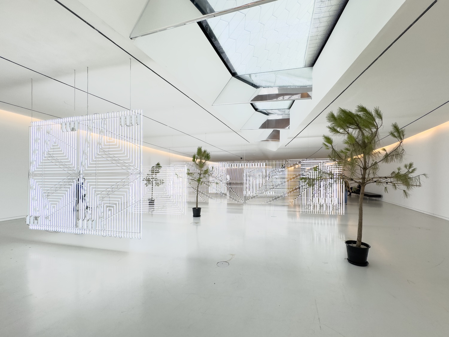 La primera exposición individual de Cerith Wyn Evans en el MAAT de Lisboa, Forms in Space… through Light (in Time), es un desafío perceptivo que obliga a redefinir cómo experimentamos el espacio y la temporalidad. Evans transforma luz, texto y movimiento en agentes activos. Lo que podría parecer simple iluminación se vuelve un campo de fuerzas, un sistema de relaciones donde ángulos, sombras e intervalos de oscuridad adquieren sentido propio.