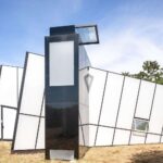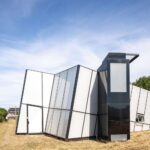 Ubicada en un barrio a la entrada de la ciudad de Carantec, Maison de Verre es un objeto inusual, casi escultórico: un recipiente de luz natural. Su estructura —que juega entre la verticalidad y la inclinación— parece ajena a su contexto urbano. De tintes futuristas, su atípica fachada emerge de la tierra “como un capullo de flor… aislado del resto del mundo”, describe el equipo.