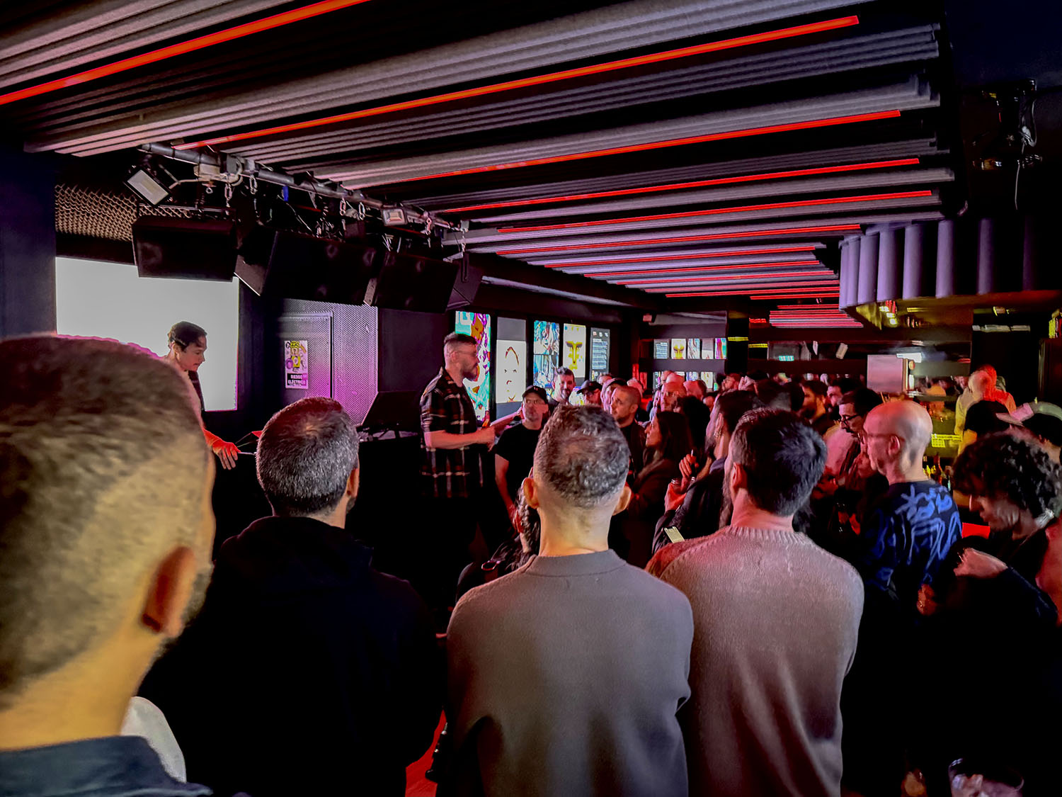 La temporalidad ha sido una parte fundamental del planteamiento del evento. Conjugando expo, conversación pública y performance audiovisual, Look Who’s Looking duró una sola noche. La velada en Siroco ARTLAB comenzó con una charla del comisario Tales Tommasini y continuó con un DJ set con visuales en directo de Hey Pablo!, que extendió la reflexión sobre la imagen sintética hacia la cultura de club y las estéticas digitales contemporáneas.