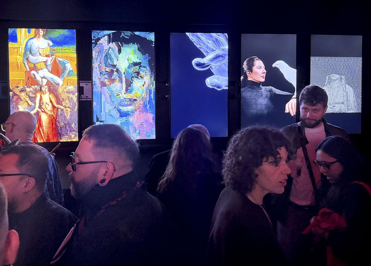 La exposición se compone de obras que indagan las posibilidades visuales y críticas de la IA desde enfoques diversos. Si Michael Alexander trabaja con imágenes sintéticas de figuras cuasirreligiosas que recuerdan a retratos de santos o iconos devocionales, Lance Weiler lo hace generando otras desde la lógica del collage y la fragmentación de datos, asumiendo el glitch como método creativo. Por su parte, Marina Abramovic desarrolla avatares tecnológicos para prolongar su práctica performativa más allá de su propia vida, mientras que Kika Nicolela utiliza su propio cuerpo —con sobrepeso, de mediana edad y no blanco— para confrontar los sesgos incrustados en la visión artificial y reclamar visibilidad. Completan el conjunto DeepBlack, Connie Bakshi, Max Capacity, Prozzzessing, Frank Manzano y Víctor Arce, cuyas piezas amplían el campo de la creación algorítmica hacia distintos territorios de experimentación y crítica digital.