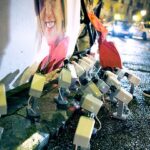 En su vida diurna, los dos componentes de Luzinterruptus se dedican a la fotografía, al arte y la iluminación. Se encuentran al menos una vez por semana y conciertan acciones clandestinas de acuerdo con las escenas que les sugiere Madrid. Sus ideas nacen de manera espontánea. “A veces salimos con nuestro carrito de luces por la ciudad sin rumbo fijo, a la búsqueda de instalaciones que otros ciudadanos construyeron anónimamente y que en ese momento nos inspiran y sentimos especialmente artísticas o reivindicativas”. Nacido en 2008, el grupo se caracteriza por “poner un punto de atención luminoso a problemas que detectamos en la ciudad y que parecen pasar desapercibidos a las autoridades o los ciudadanos”. Rituales anodinos como la recogida de la basura con bolsas de residuos iluminadas desde dentro. O la excesiva contaminación lumínica que escenifican, por ejemplo, con la pieza Malas hierbas mutantes. Humor crítico frente al invasivo “verde antinatural” de los rótulos de farmacia, cuyo impacto, nos cuentan, “creará en un futuro no muy lejano una nueva especie vegetal alimentada por la fotosíntesis de esa potente luz de bajo consumo”.
