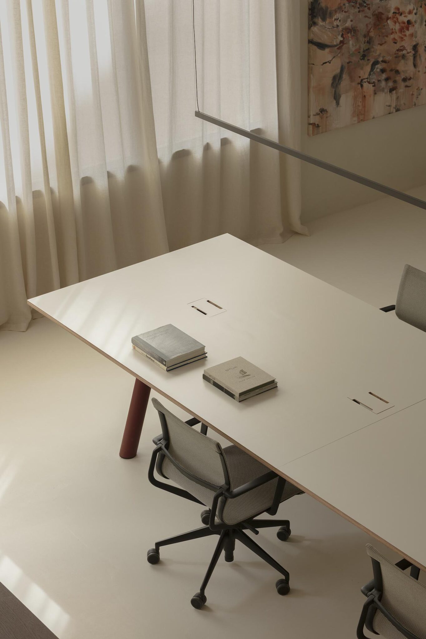 En el número 318 de Travessera de les Corts, su recién inaugurado estudio encapsula su esencia en un entorno sosegado —que algunos definirían como zencon pocos elementos y recursos sencillos capaces de resolver las necesidades técnicas. Un ambiente que confiere una pausa mental libre de distracciones superfluas y, a la vez, un punto de encuentro entre el equipo, los clientes y los colaboradores. Esa confluencia, que ya se daba en sus anteriores estudios —ubicados en Espai Travessera y Espai París respectivamente—, se plasma ahora con mayor madurez en la nitidez y la disposición dinámica escogida.