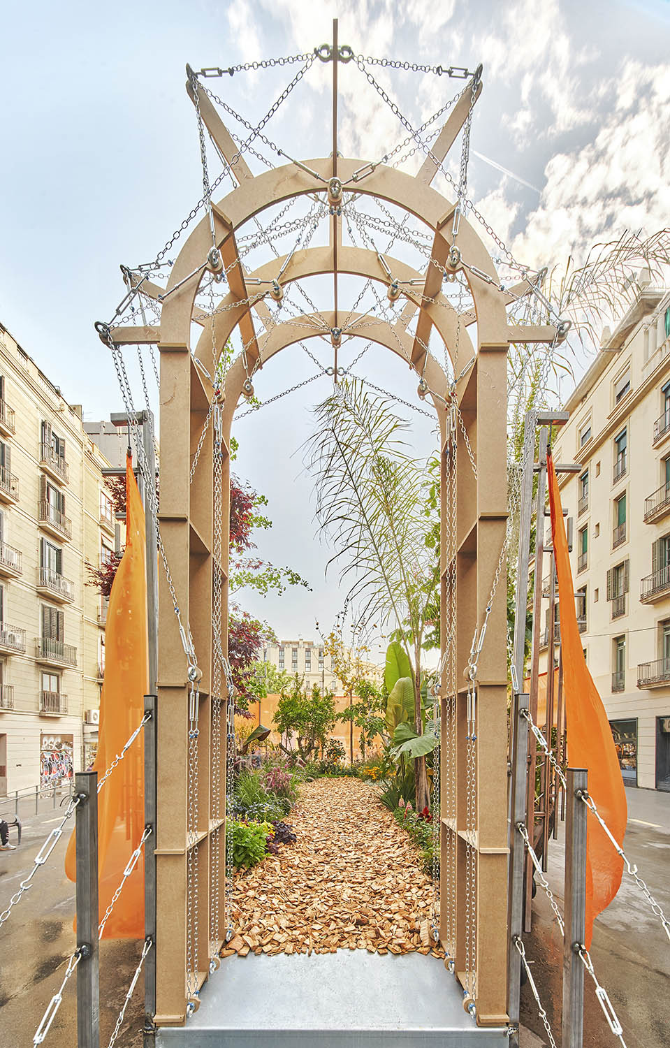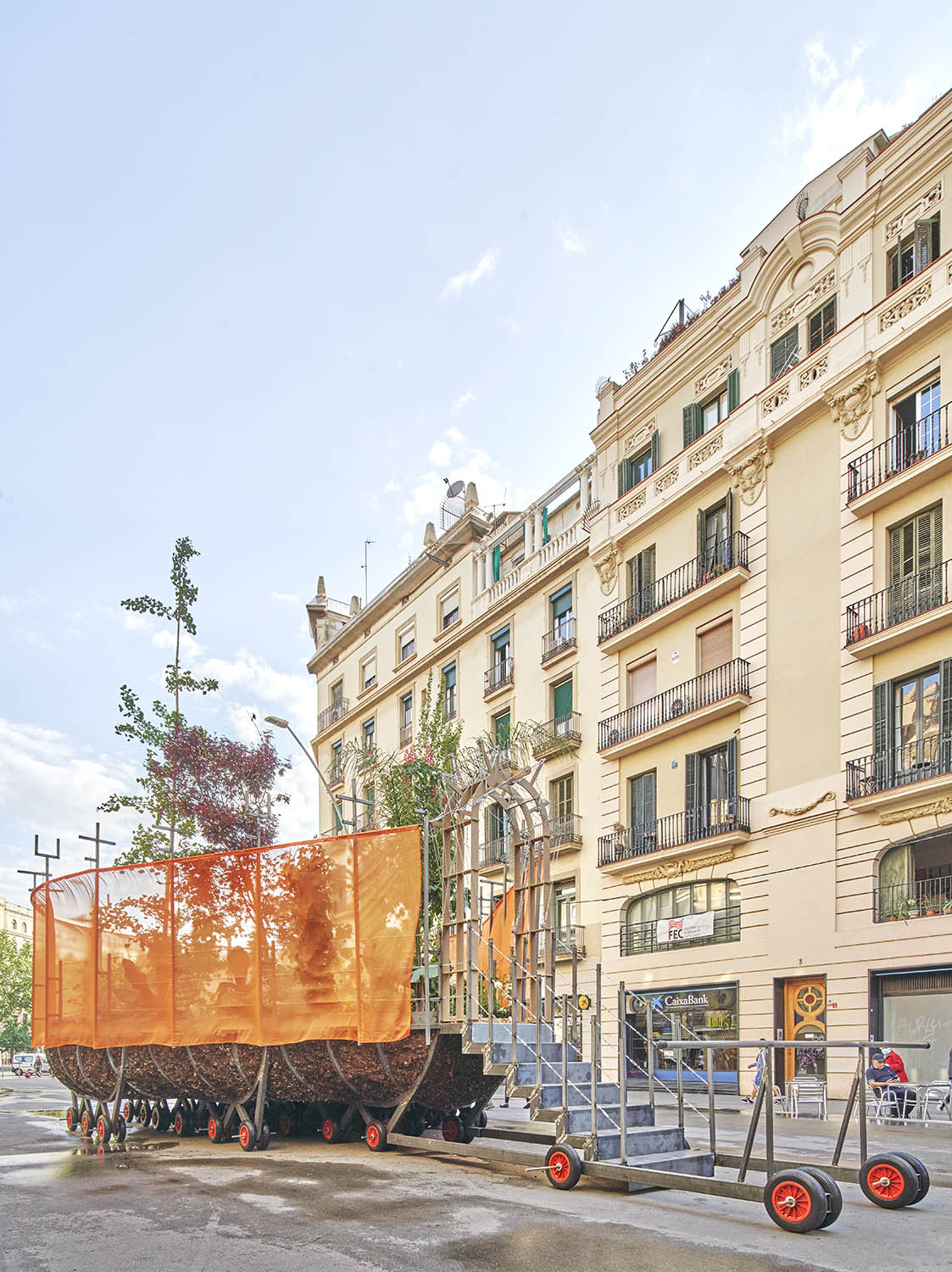 La mayoría de las obras que hemos visto tienen en común una extensión de varias hectáreas que no siempre está disponible. TAKK Architecture elaboró Arcapara el Festival de Arquitecturas de Barcelona (2022), una propuesta que reducía estas grandes infraestructuras a la unidad mínima. El estudio catalán pensó que este miniparque de emergencia debía poder operar en todas las calles de una ciudad, y decidieron que el modo de eliminar las restricciones geográficas de acceso a estos microespacios era convertirlos en un elemento móvil. Con estos pocket parkssobre ruedas, los ciudadanos se transforman en transportistas de beneficios ecológicos. El trabajo de TAKK ayuda a entender la dimensión del problema, a reducir la distancia en las metrópolis y a elaborar un paisaje anfibio hecho con una arquitectura de tierra y raíces.