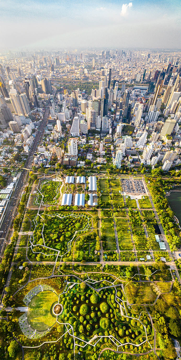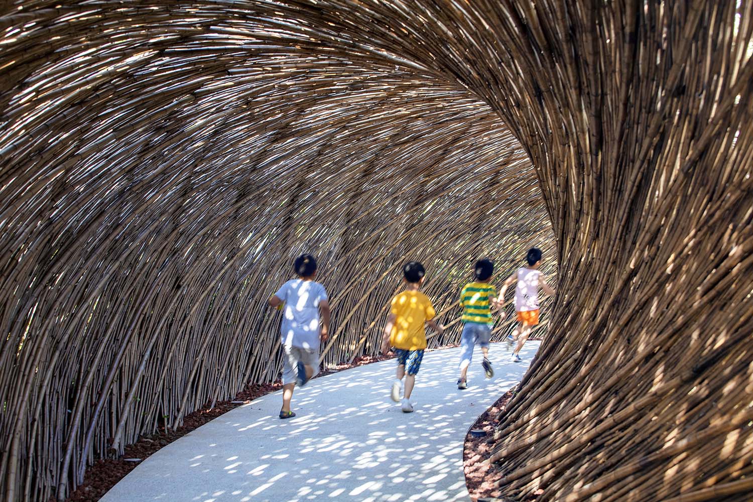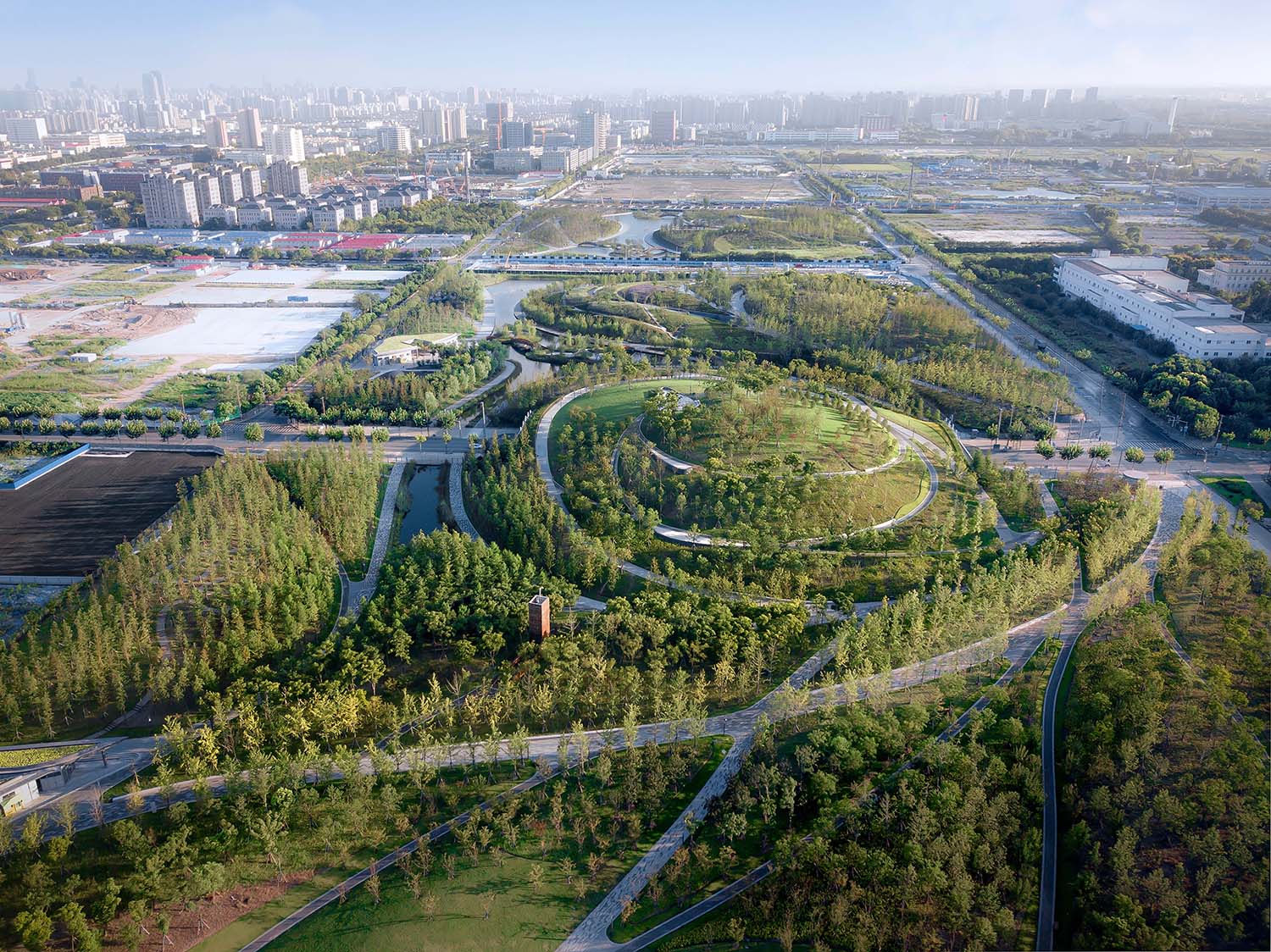 Tanto Benjakitti Forest Park (Turenscape) en Tailandia como Taopu Central Park (Field Operations) en China convierten grandes extensiones industriales en una laguna donde desviar, retener y laminar el agua para minimizar los daños de una gran escorrentía. Ambas intervenciones adoptan una estrategia que deja una escenografía de islas y pasarelas rodeadas de naturaleza más densa, en las que el nivel del agua va configurando sus límites a lo largo del año. Las áreas deportivas e infantiles se intercalan con humedales para aves de distintos tipos, y la ciudad cambia de prioridades en el paréntesis que ocupan estos parques.
