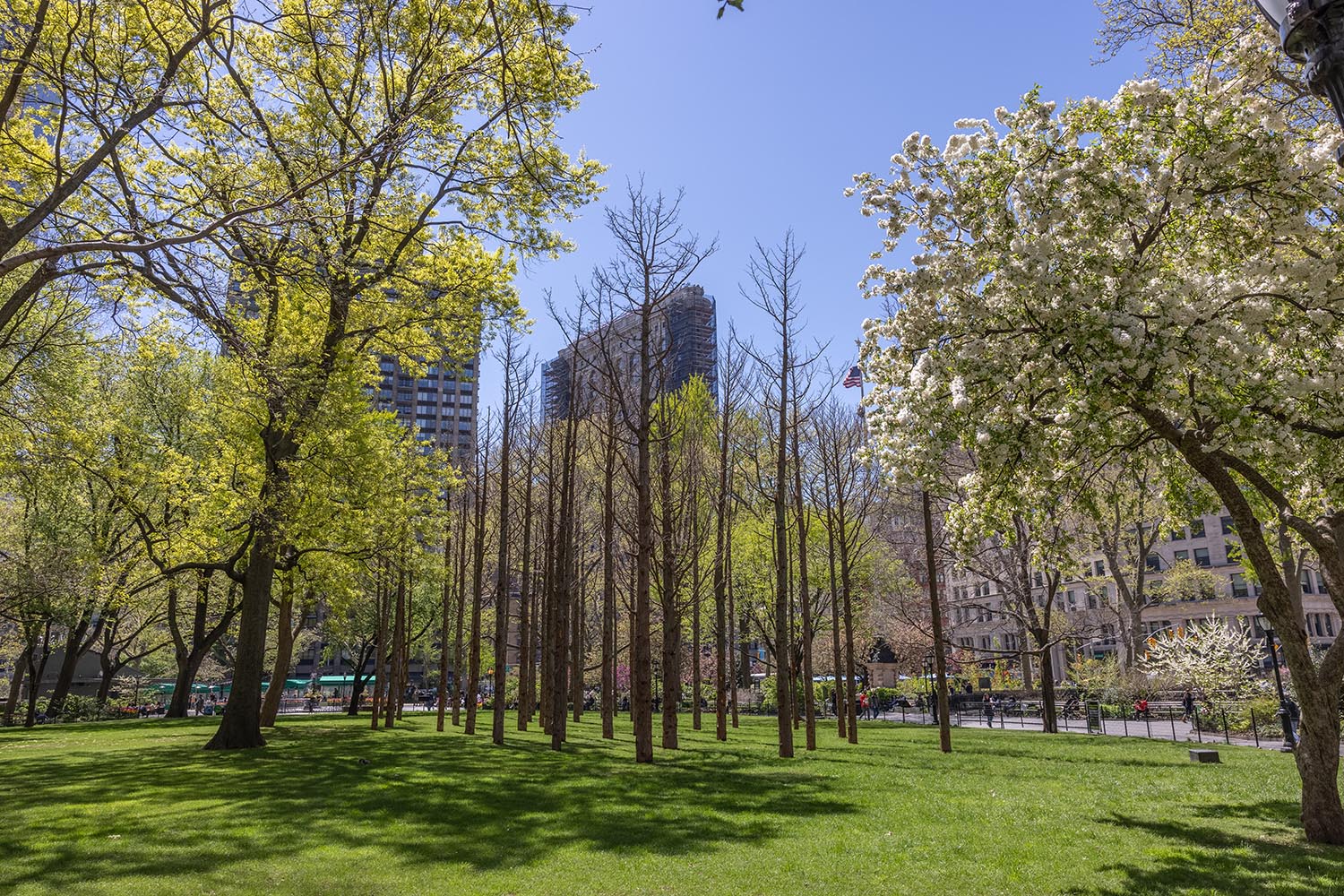 La artista norteamericana Maya Lin reflexionó sobre la importancia de la vegetación en el entorno público con Ghost Forest. La intervención —realizada en el Madison Square Park (2021)— consistió en colocar 49 cedros muertos de 12 metros. El nuevo bosque fantasma se cargaba de simbolismo en un enclave rodeado de vida; la monumentalidad de los ejemplares resaltaba la fragilidad del presente y llamaba la atención sobre una idea: quizá en un futuro cercano solo queden árboles muertos para plantar.