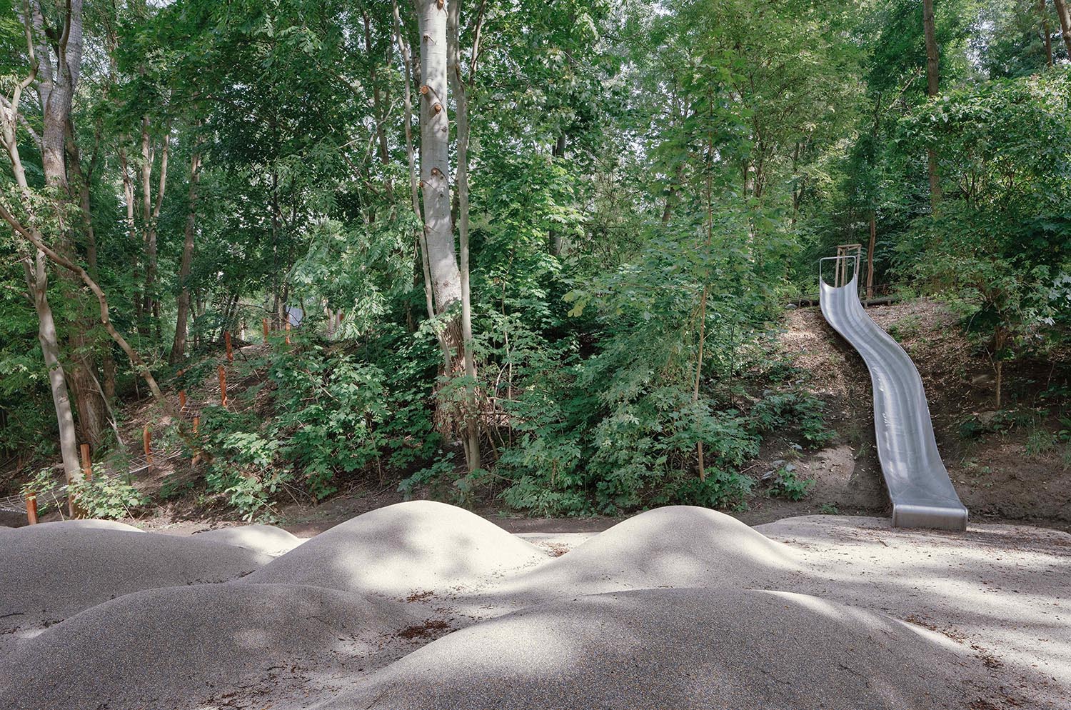 Puede ser difícil valorar la importancia de una infraestructura de este tipo cuando el agua se filtra y desaparece. Topotek 1 juega con la idea de que en ocasiones no solo es necesario que las cosas funcionen, sino que además hay que visibilizar que lo hacen. En Høje Taastrup (Dinamarca) dieron forma —en colaboración con los estudios de arquitectura Cobe, Ramboll y Glifberg-Lykke— a una zona verde que solucionaba el desnivel entre los extremos de un barrio nuevo.