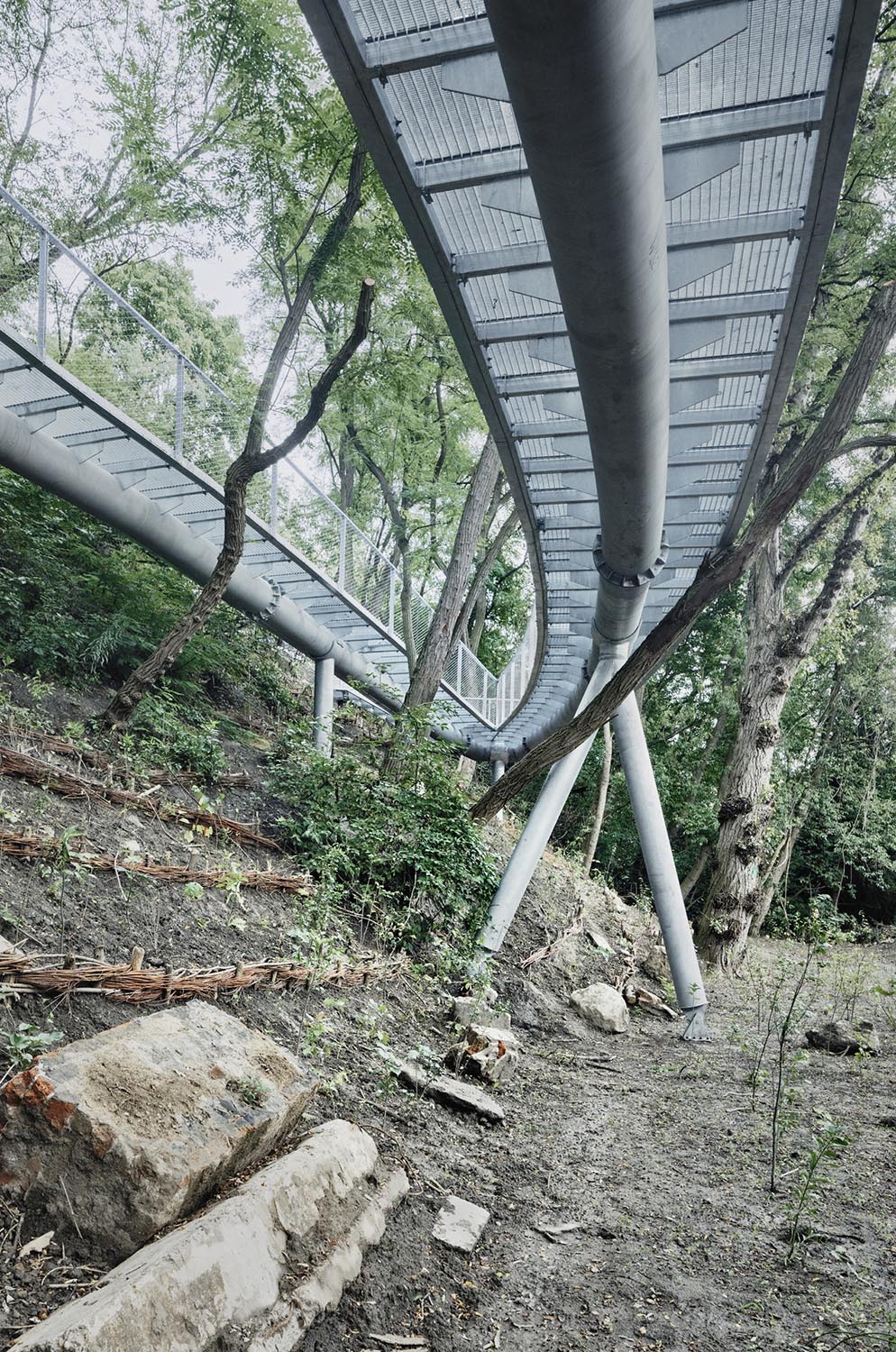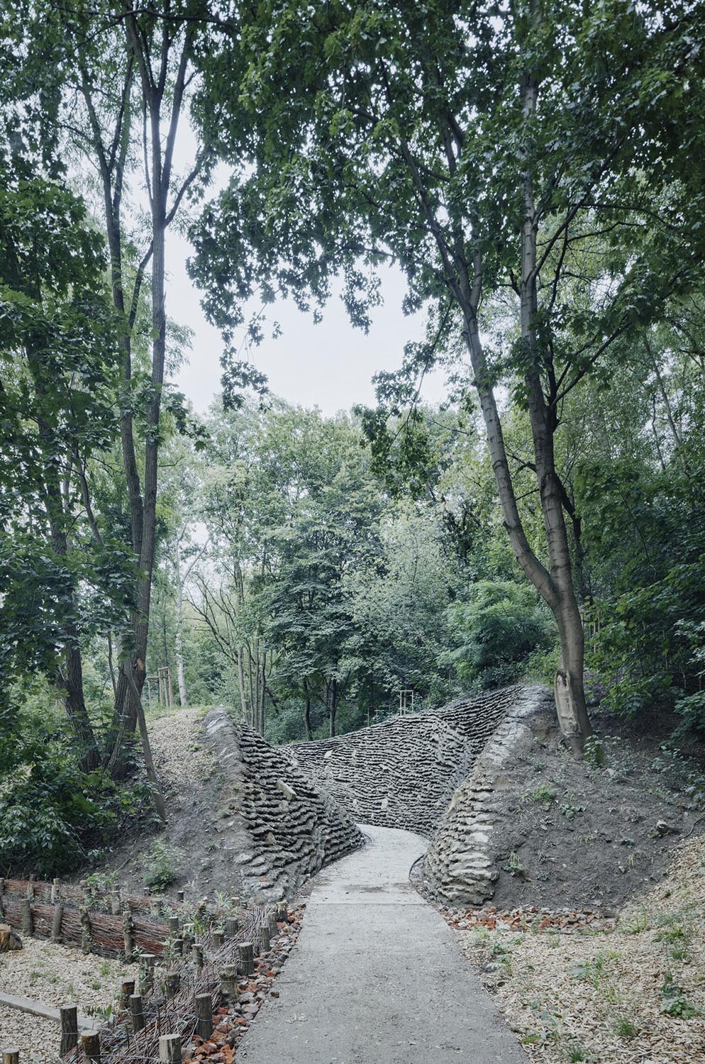 El ascenso a una colina artificial en las afueras de Varsovia, hecha con los escombros que dejó la Segunda Guerra Mundial, sirve para contar la historia de la reconstrucción de la capital tras el paso del frente. Warsaw Uprising Mound es una narración convertida en parque. Mediante escalinatas, sendas o pasarelas, los arquitectos de Archigrest nos llevan por distintas paradas, donde se explica el proceso de regeneración que se llevó a cabo. Las dimensiones del promontorio, el terreno que ocupaba en los planes de crecimiento y el simbolismo que adquiría en la historia del municipio polaco lo hacían un elemento imposible de ignorar.