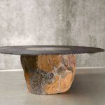 El pasado enero pudo verse, en la sede parisina de Carpenters Workshop Gallery, la exposición On Earth de Wonmin Park: 17 objetos que combinaban piedra volcánica japonesa y resina con gruesas planchas de acero y metales.