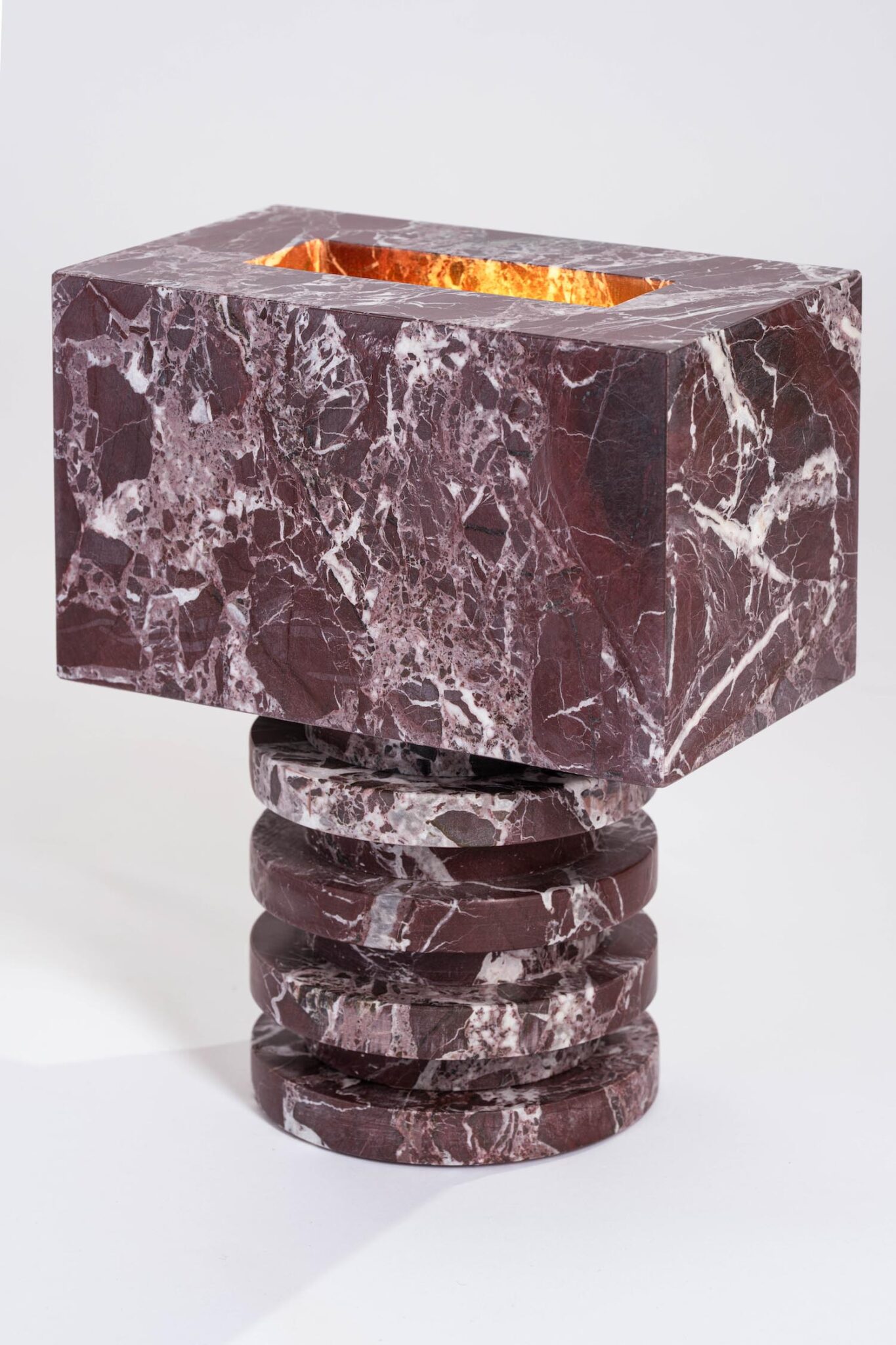El formato de estos objetos funcionales adquiere un matiz coleccionista por sus procesos y por su edición limitada: un gesto art design que trasciende la inmediatez industrial y proyecta su belleza hacia adelante. En este contexto, el fulgor parece haber encontrado un bálsamo en lo pétreo. Como escribió Octavio Paz, “lo que no es piedra es luz”: una se funde en la otra, y esa reciprocidad eleva estas piezas a un registro artístico. Quién iba a decir que a la firmeza de la piedra le sentaría tan bien ese fulgor que la habita.