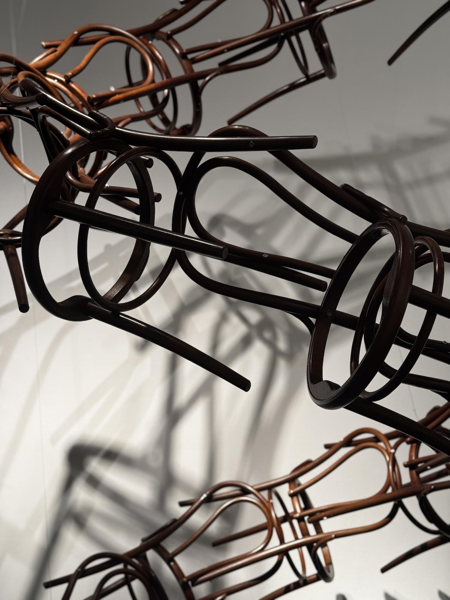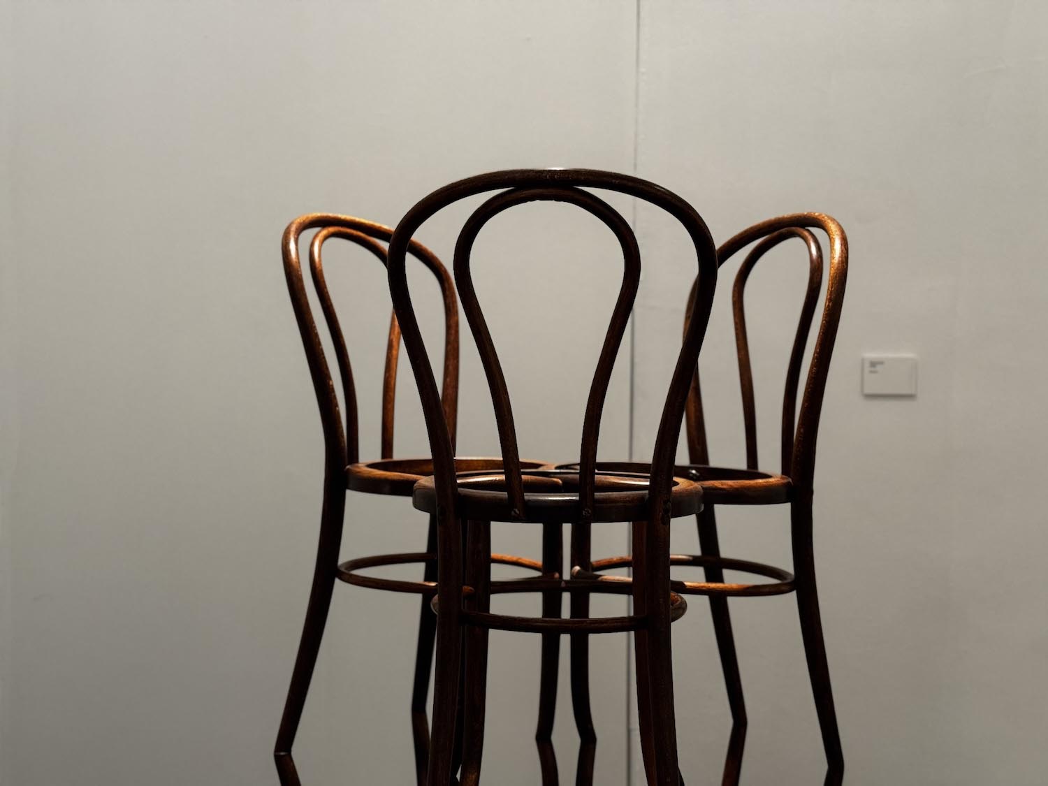 En el caso de Reinoso, hay una serie de rasgos recurrentes que se convierten en seña de identidad distintivos de su práctica. Por ejemplo, en cuanto a la utilización de dos tipologías de mobiliario en específico, como sucede con los bancos públicos o las sillas en madera curvada de la marca Thonet. Ambas nociones nos remiten precisamente a dos de las ideas apuntadas por George Steiner, en su publicación La idea de Europa, como definitorias del espíritu que ha conformado el carácter identitario del viejo continente. Por una parte, el banco alude al concepto del parque y, por extensión, del espacio público que, según Steiner define “el paisaje caminable, la geografía hecha a la medida de los pies» en relación a la ciudad europea. Por otra parte, las sillas Thonet se vincularían a “ese café (…) inseparable de las grandes empresas culturales, artísticas y políticas del Occidente”. Y, en ambos casos, encontraríamos subyacentes las sensaciones de pausa y lentitud.