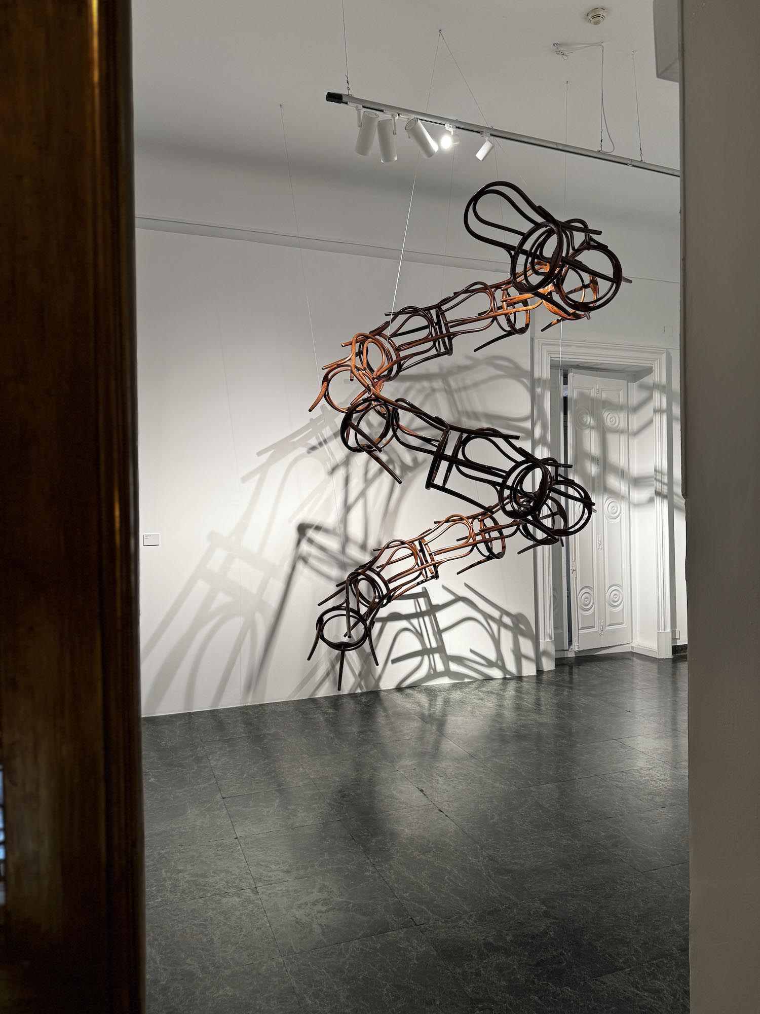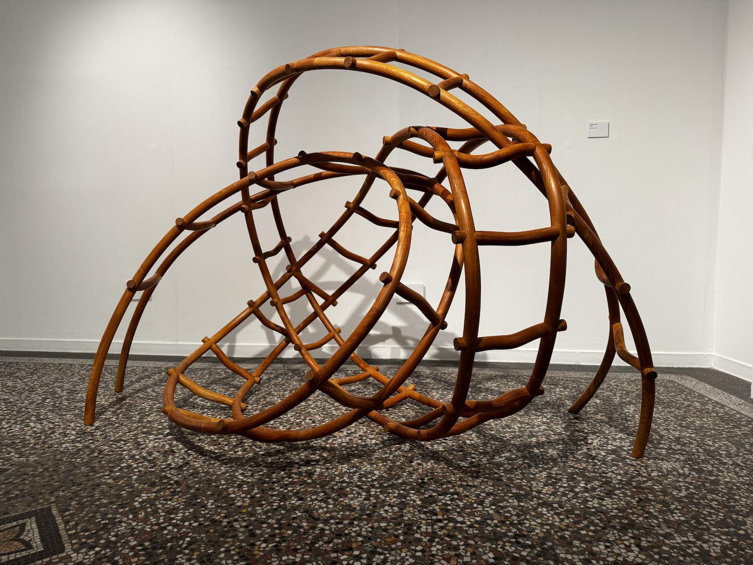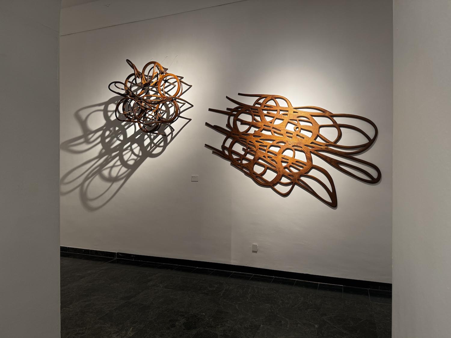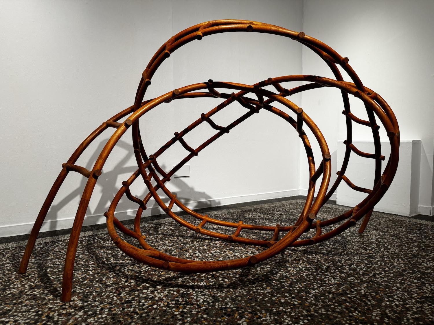 Pero tal vez sea una visión concreta —formalizada y expresada de diversas maneras— la que hace identificable y distinguible gran parte de la obra de Reinoso. Esta consistiría en una especie de “desmaterialización” del objeto que, mediante un proceso de sublimación, haría que este se volatilizase en volutas, curvas, contracurvas y espirales… En formas que podrían evocar la frase que —más allá de su disección filosófica y política— Marx y Engels expresaron en el Manifiesto comunista: “Todo lo sólido se desvanece en el aire”; y que muy bien podría tener en el “pensamiento débil” de Gianni Vattimo esa conexión con la posmodernidad ochentera del pasado siglo, y cuyo correlato actual podríamos encontrar en la “modernidad líquida” de Zygmunt Bauman.
