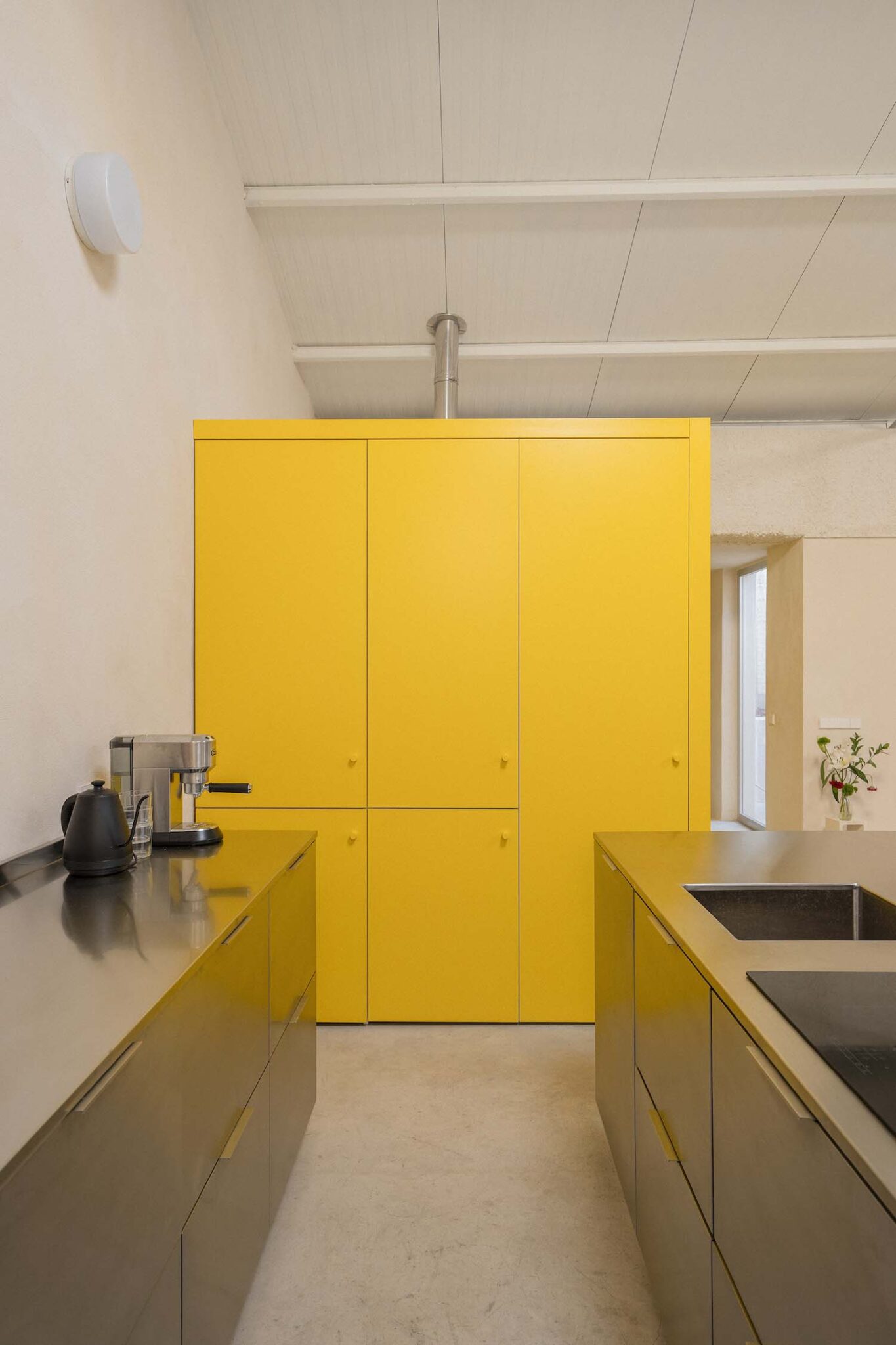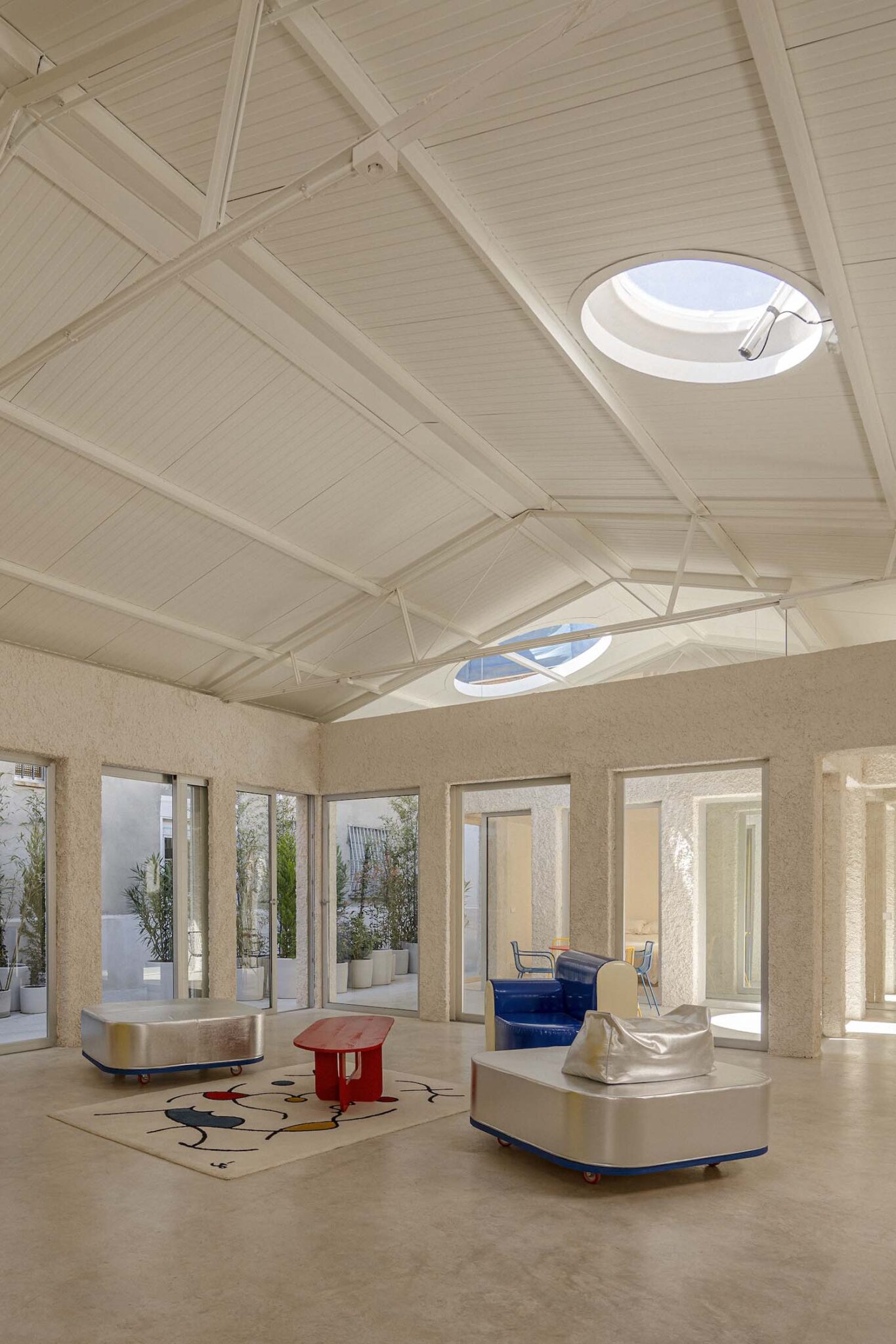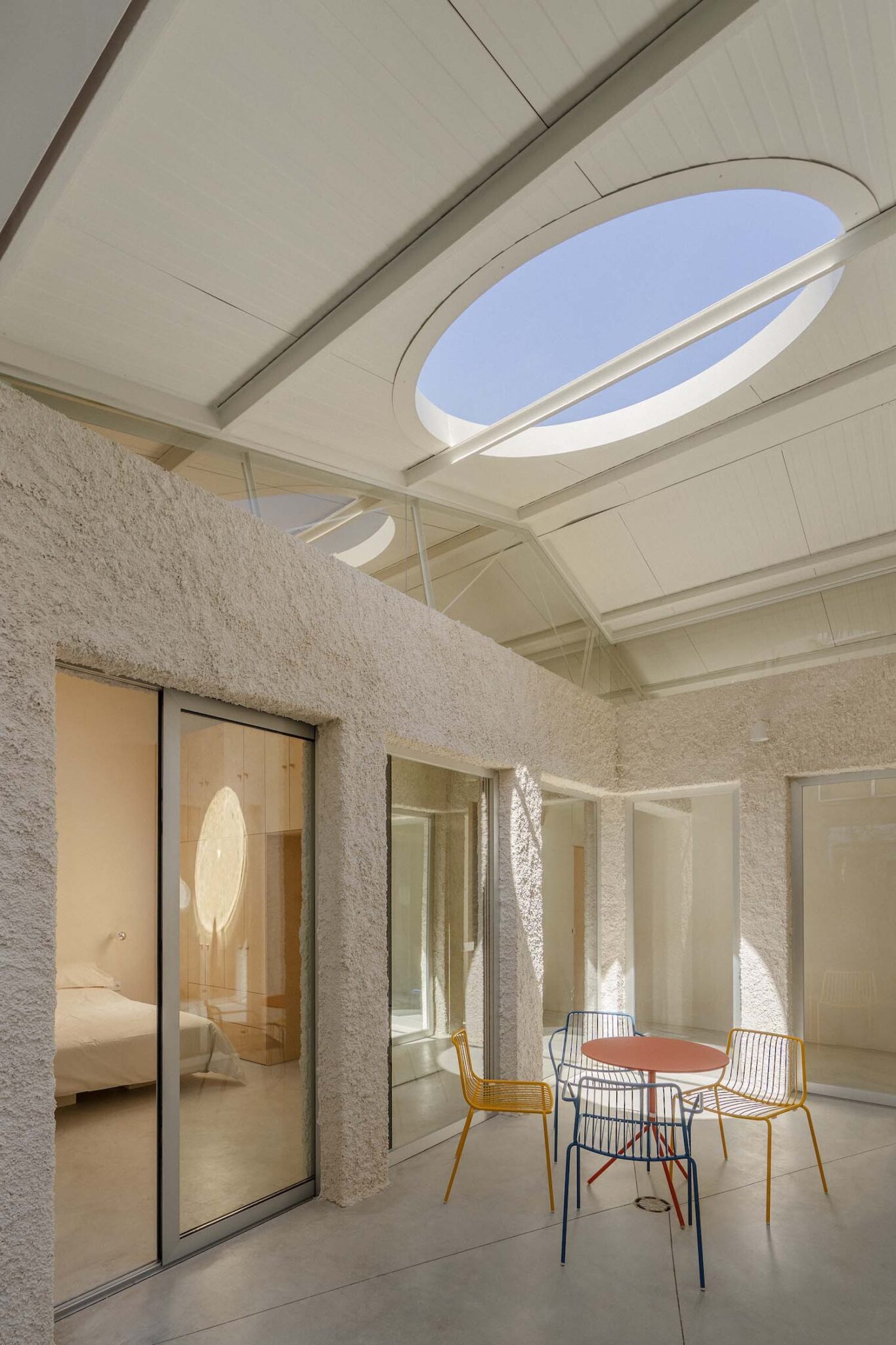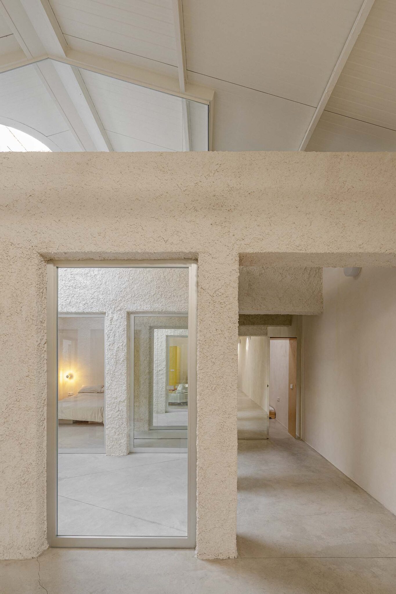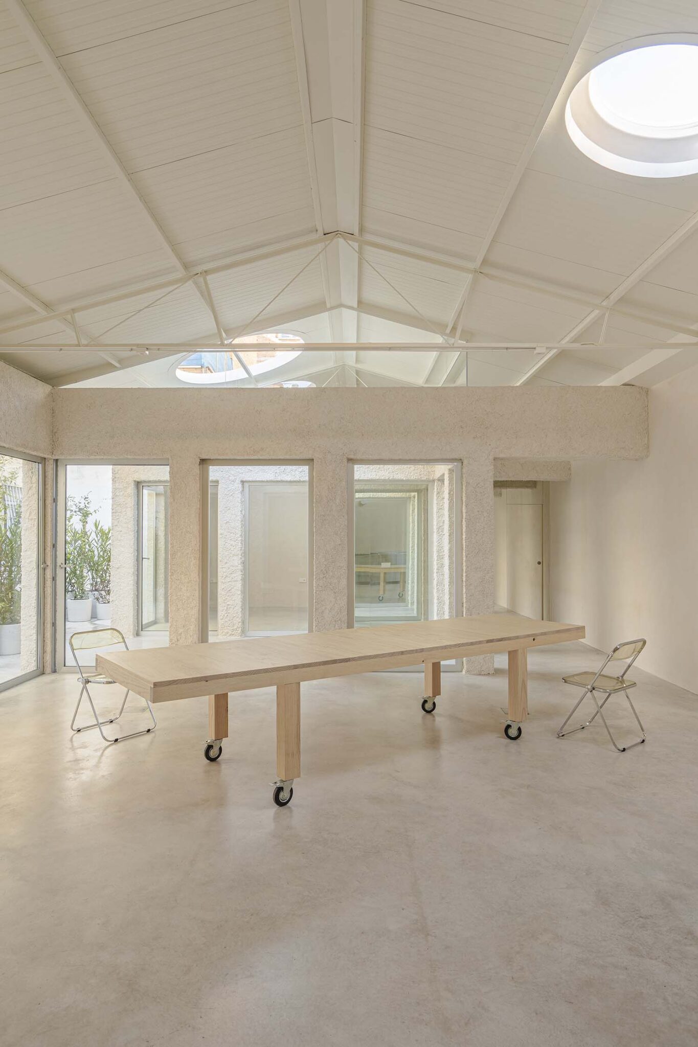 El proyecto difumina la rigidez que estamos acostumbrados a ver en una casa, y su interiorismo se encarga de incidir en el carácter industrial de la cubierta. Las nuevas entradas de luz resaltan la esbeltez de la estructura metálica, y los acabados continuos de las paredes y del suelo realzan la idea de que todo debe ocurrir en esa nueva plaza. Como si después de toda la transformación el espacio resultante fuera solamente un patio.