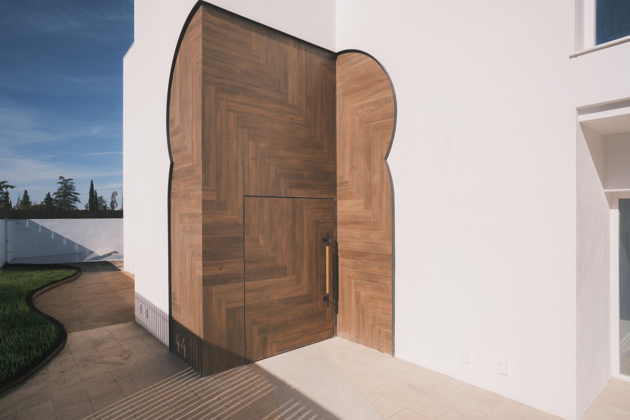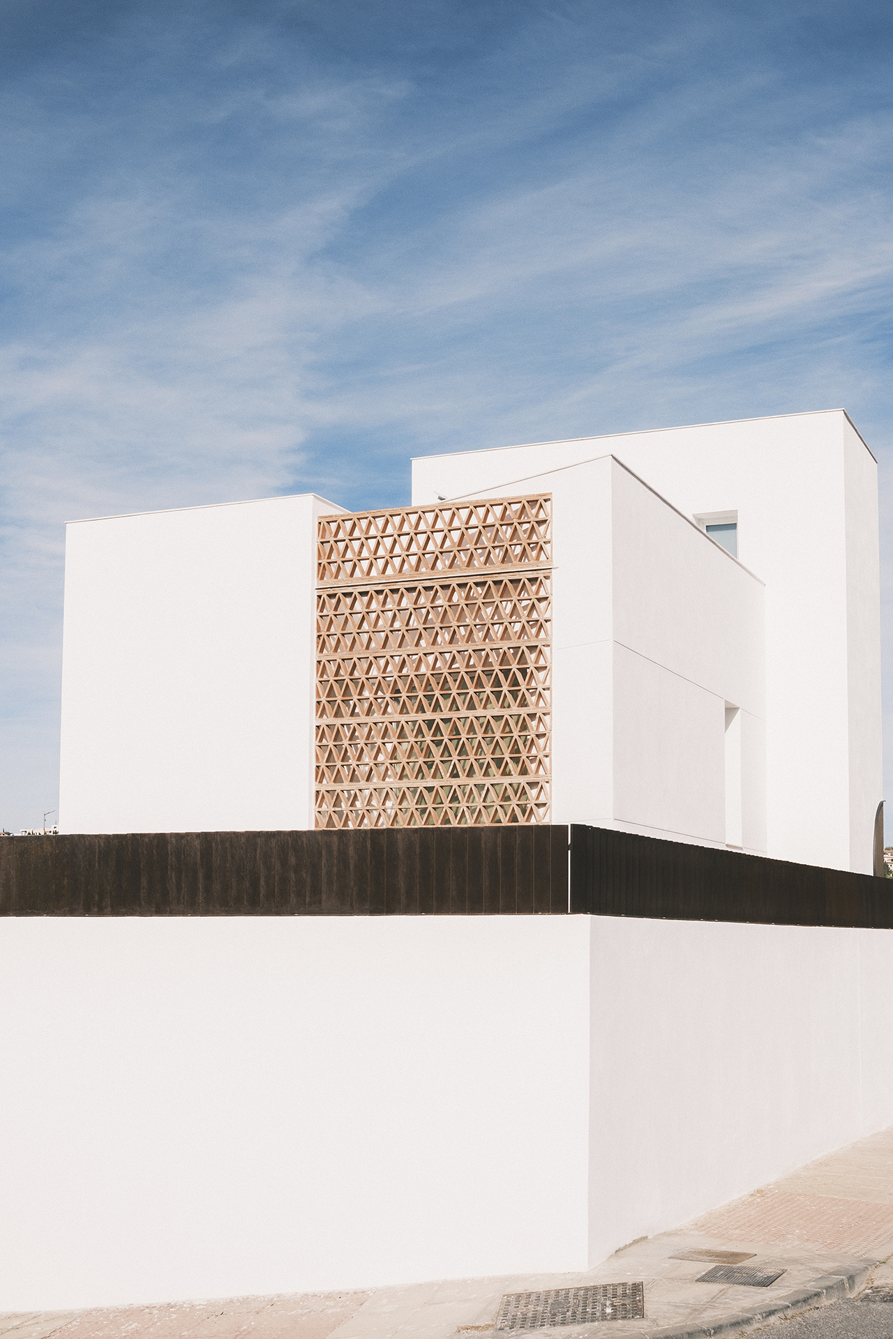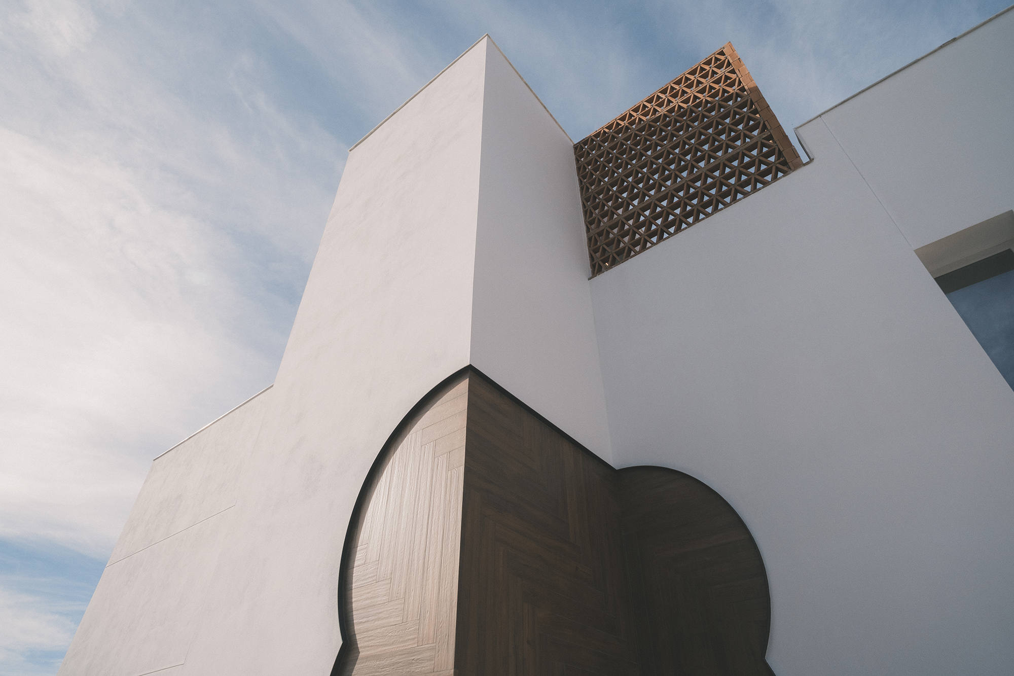 El acceso se resuelve mediante una falsa puerta retranqueada que introduce profundidad y expectativa.