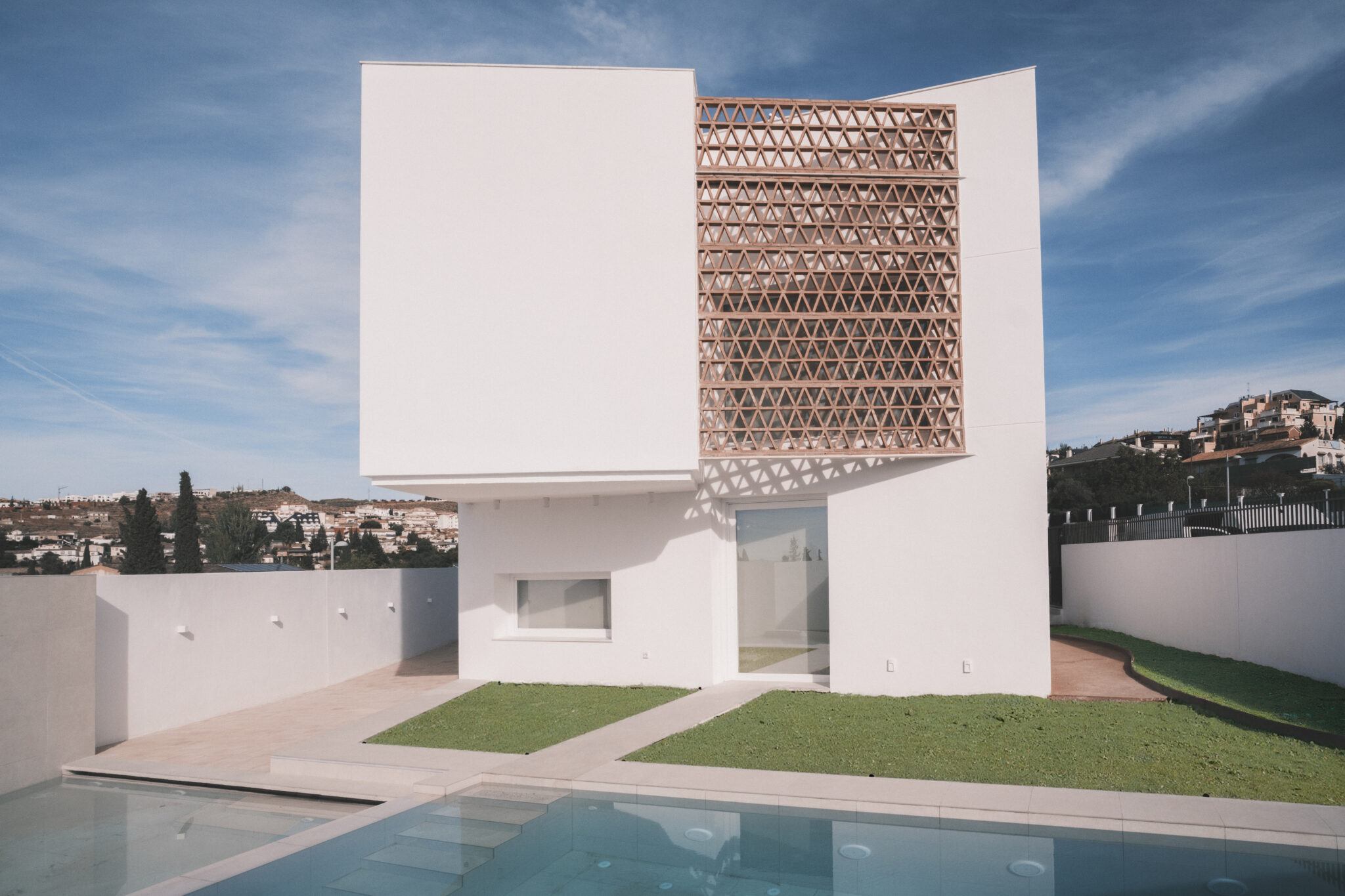 Casa Alma es una vivienda unifamiliar situada en el cinturón de Granada. Su nombre procede de “Alma al’hadi”, agua en calma en árabe, y resume la esencia del proyecto: un refugio del que no apetezca salir, un hogar en el que la vida cotidiana se sienta ligera y en paz.