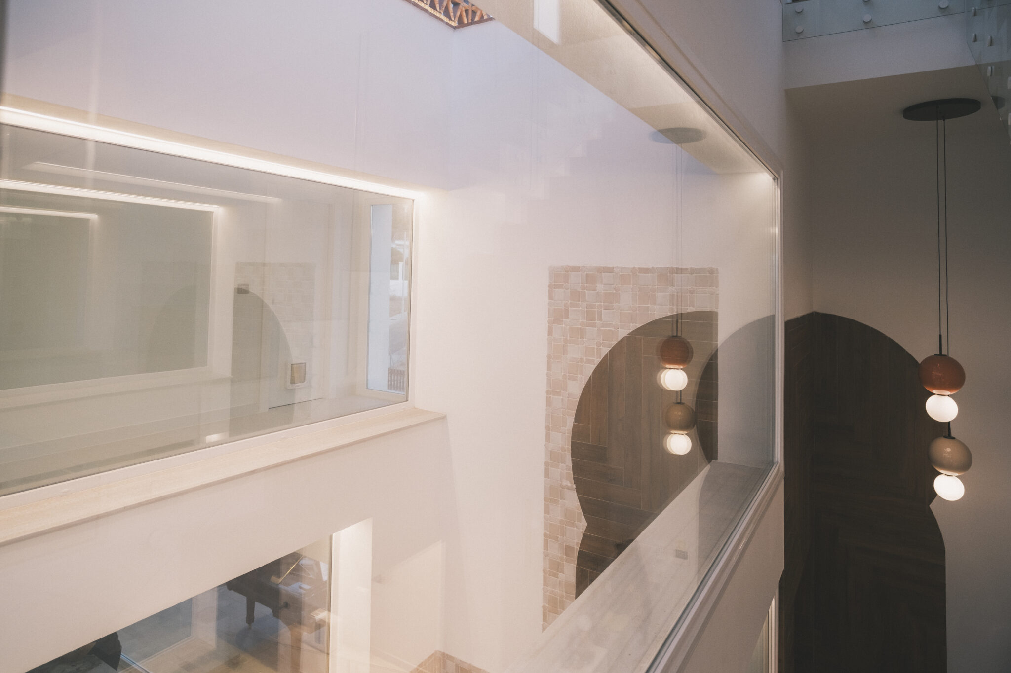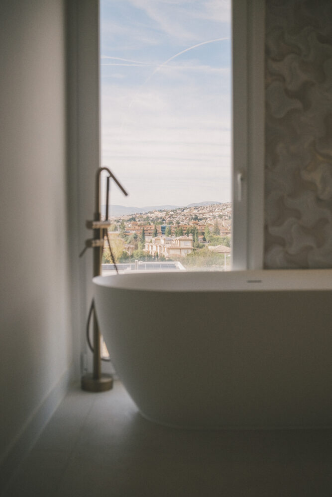 Los propietarios son grandes amantes de Granada y de la Alhambra, pero el proyecto huye de cualquier simulacro literal. En lugar de copiar formas, recupera sensaciones: la escala rotunda de ciertas puertas, el sonido permanente del agua, los patrones que se repiten en pavimentos y celosías.