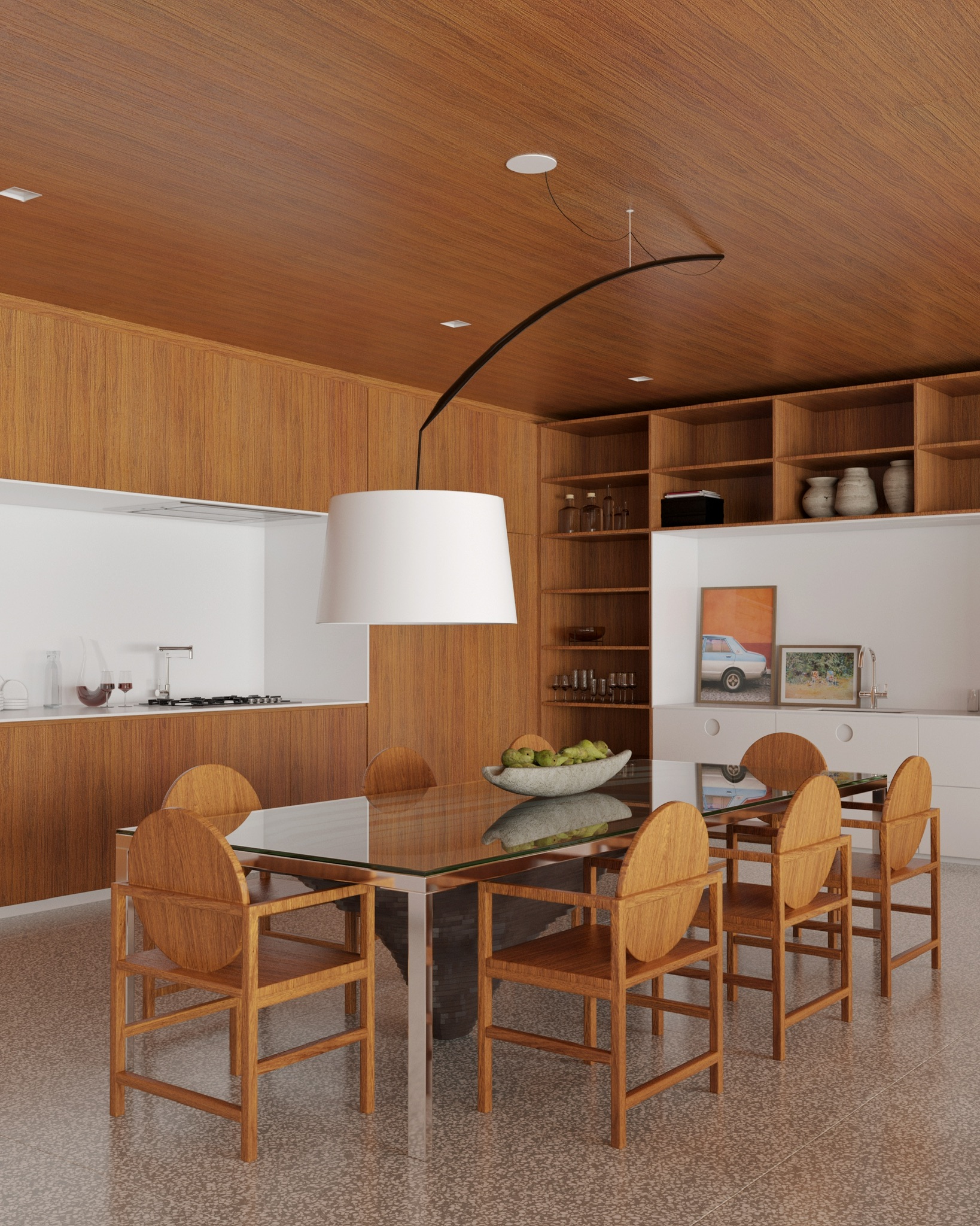 «La mesa de comedor avanzando hacia el área de la cocina transforma el espacio en un ambiente de convivencia, no solo de preparación o trabajo», afirma el Estudio Cara. La integración con el salón se vuelve más fluida, reforzando el uso social del ambiente.