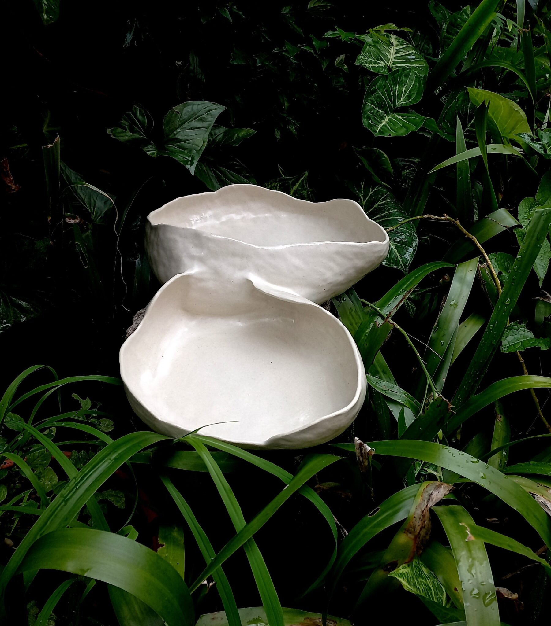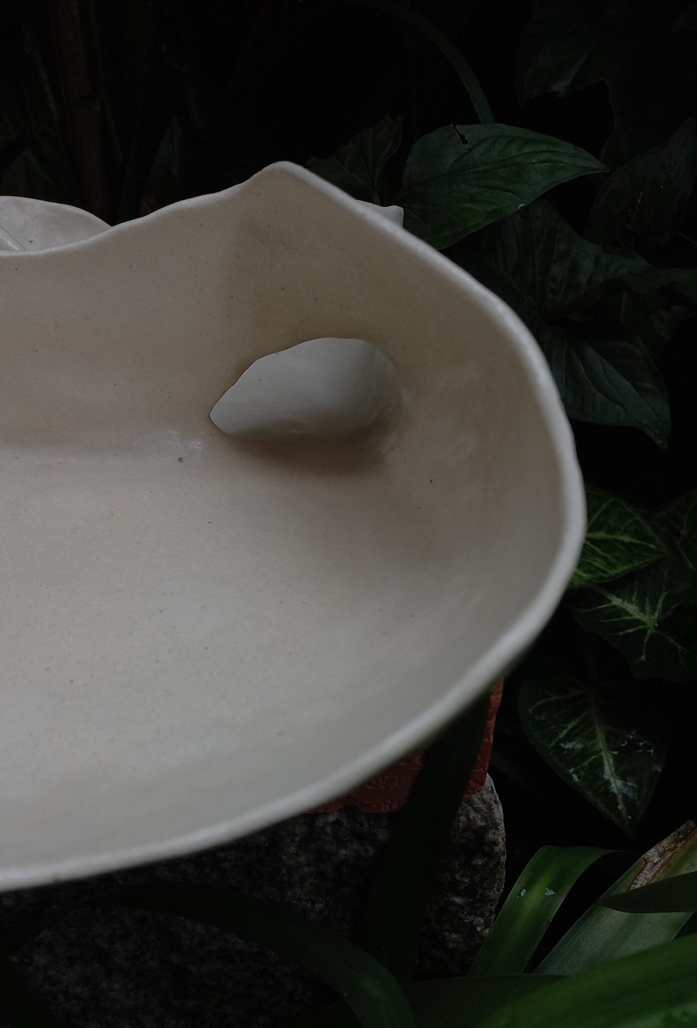 Los bordes irregulares, característica distintiva de su trabajo, son resultado directo de esta sintonía con la tierra. Al rechazar patrones rígidos y aceptar las imperfecciones naturales del proceso, la ceramista desafía la idea industrial de perfección. Cada borde ondulado cuenta la historia de su creación, registra el momento exacto en que la arcilla dijo «basta» y la artista respetó ese límite.