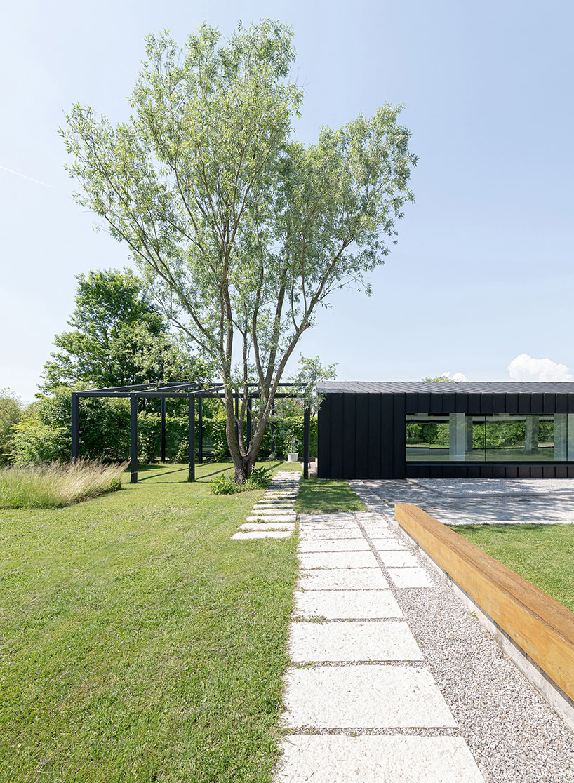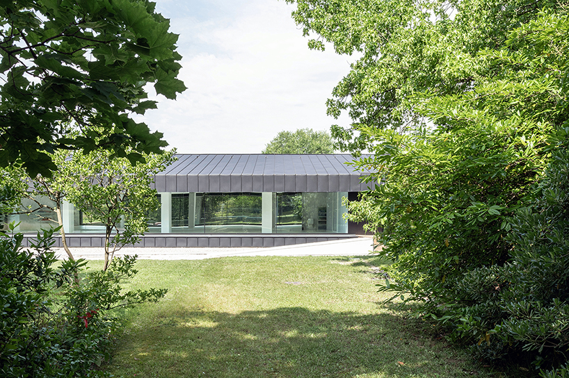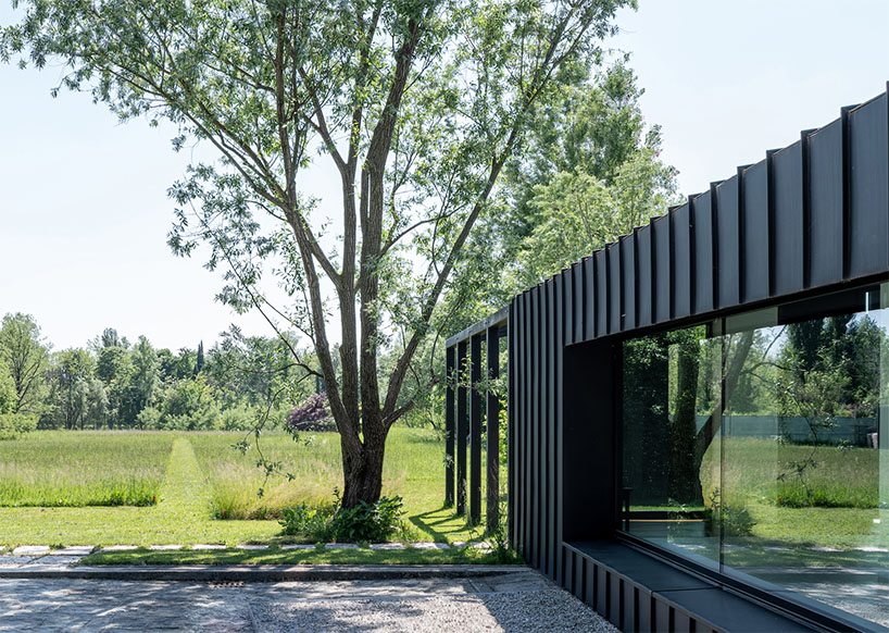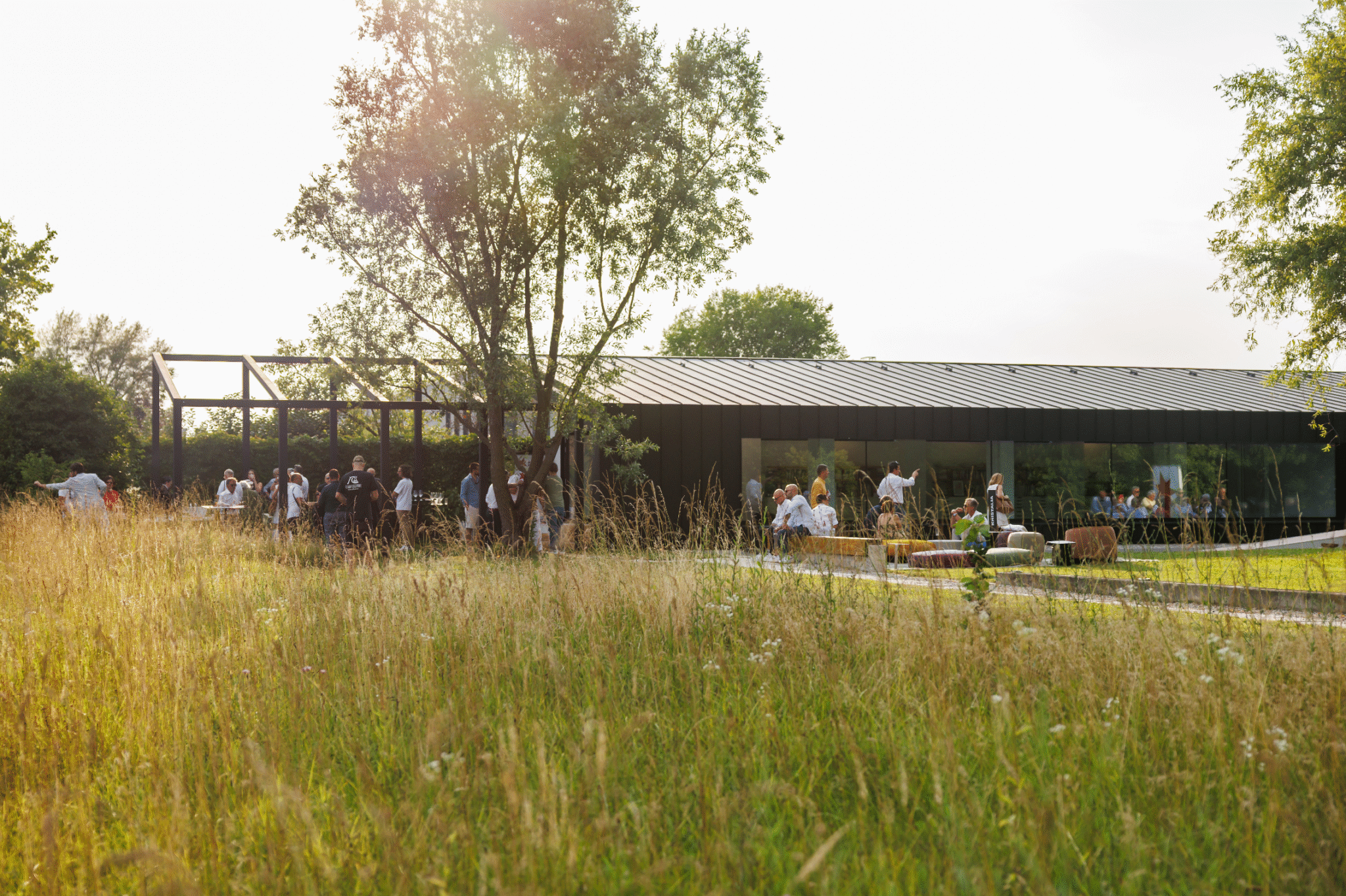 Esta barchessa contemporánea se erige como un punto de observación, un laboratorio concebido como una herramienta para entrenar la mirada y captar lo impredecible, lo inesperado, los acontecimientos imprevistos que tienen lugar a lo largo de las estaciones en la pradera permanente adyacente de más de 2500 m².
