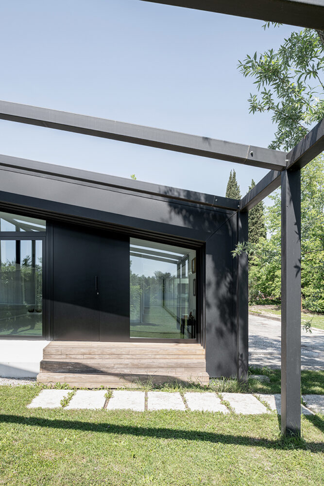La remodelación de este edificio comenzó con una limitación topográfica fundamental: la propiedad se ubica en el límite de la zona potencialmente inundable del río Meduna, principal afluente del río Livenza, que desemboca en el mar Adriático.