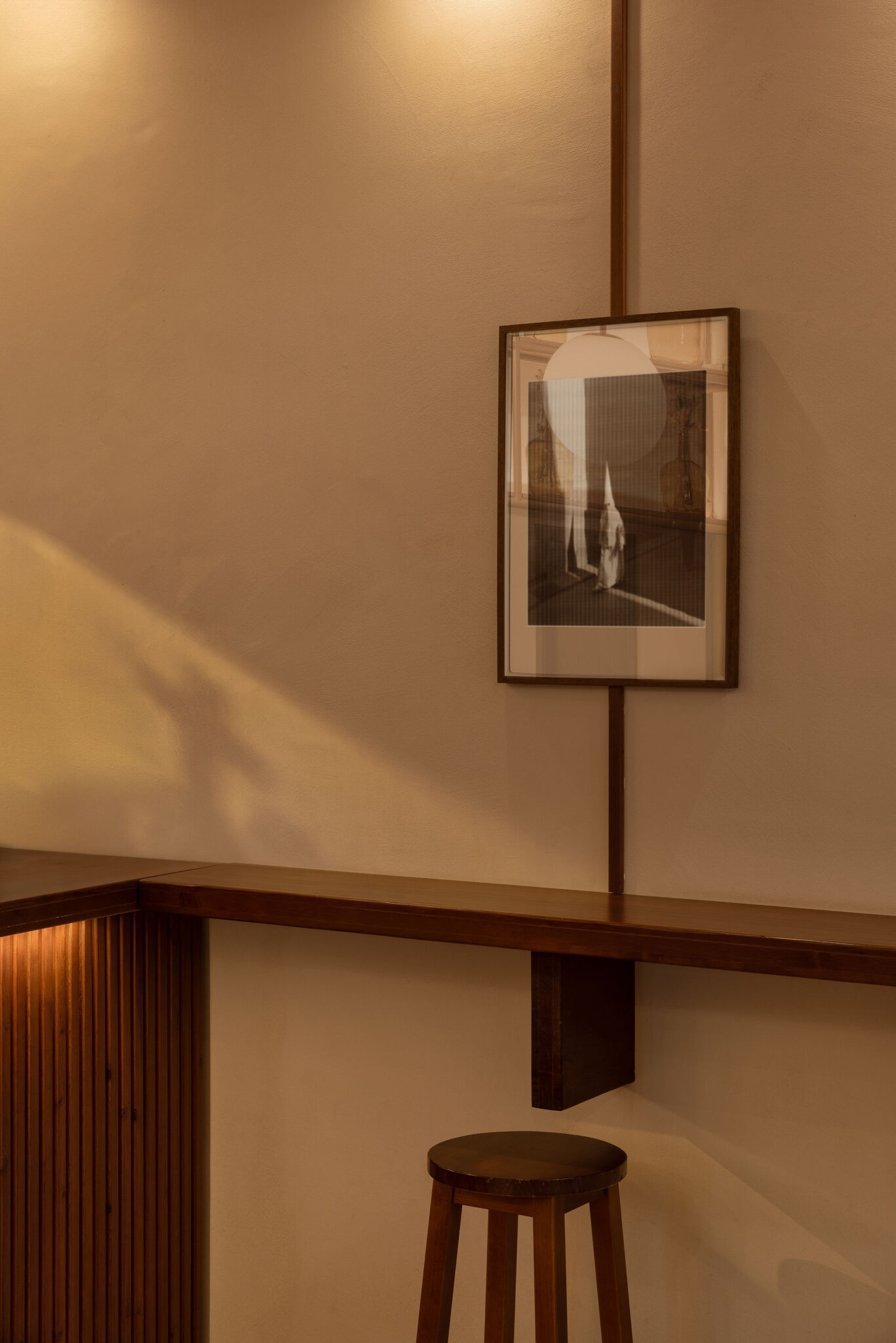 El cuidado por el detalle fue esencial. La antigua taberna tenía sus paredes repletas de cuadros y estampas de Semana Santa, colocados sin orden ni concierto, como sucede en tantas tabernas sevillanas. En esta nueva etapa, se quiso mantener ese carácter identitario, pero reinterpretado con un aire más armónico y contemporáneo: las imágenes ahora conviven en una disposición pensada, casi museográfica, que permite al visitante detenerse y observar con calma. La devoción sigue presente, pero bajo una mirada renovada.